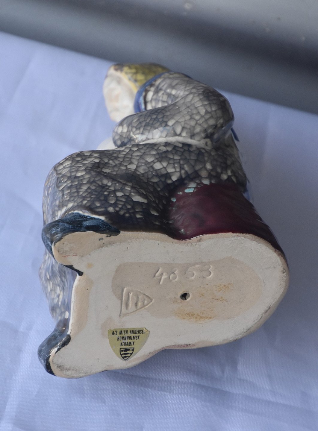 Keramik, keramikfigur, glaseret keramik, kvindefigur, fiskefigur, lertøj, lertøjsfigur, Michael Andersen keramik, Michael Andersen figur