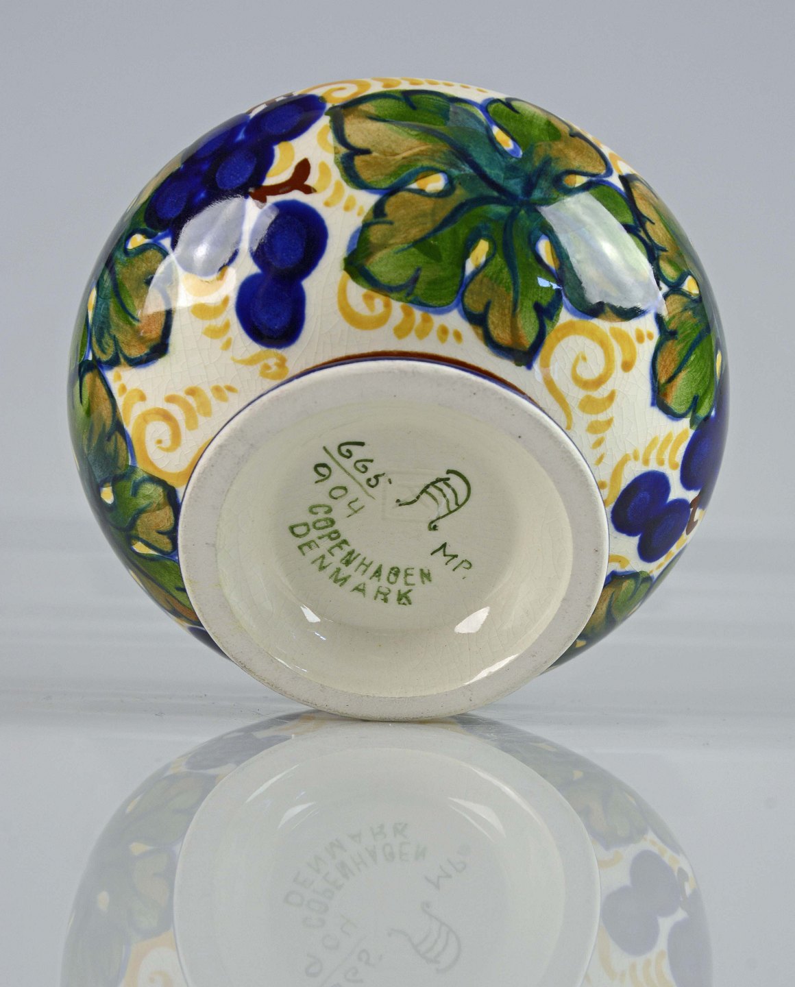 Mindre skål i kunstfajance med motiv af vindrueklaser og blade fra Aluminia nr. 665/904