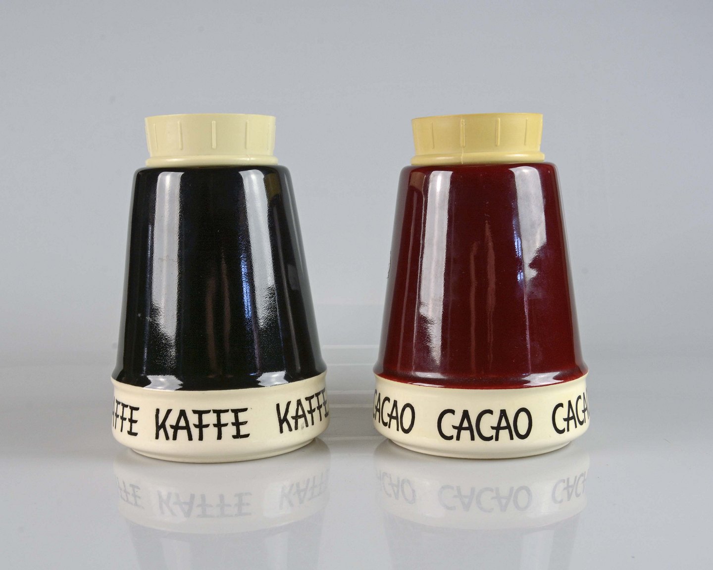 Kaffe, sort og Cacao, rød. Pris pr. stk. 500,-