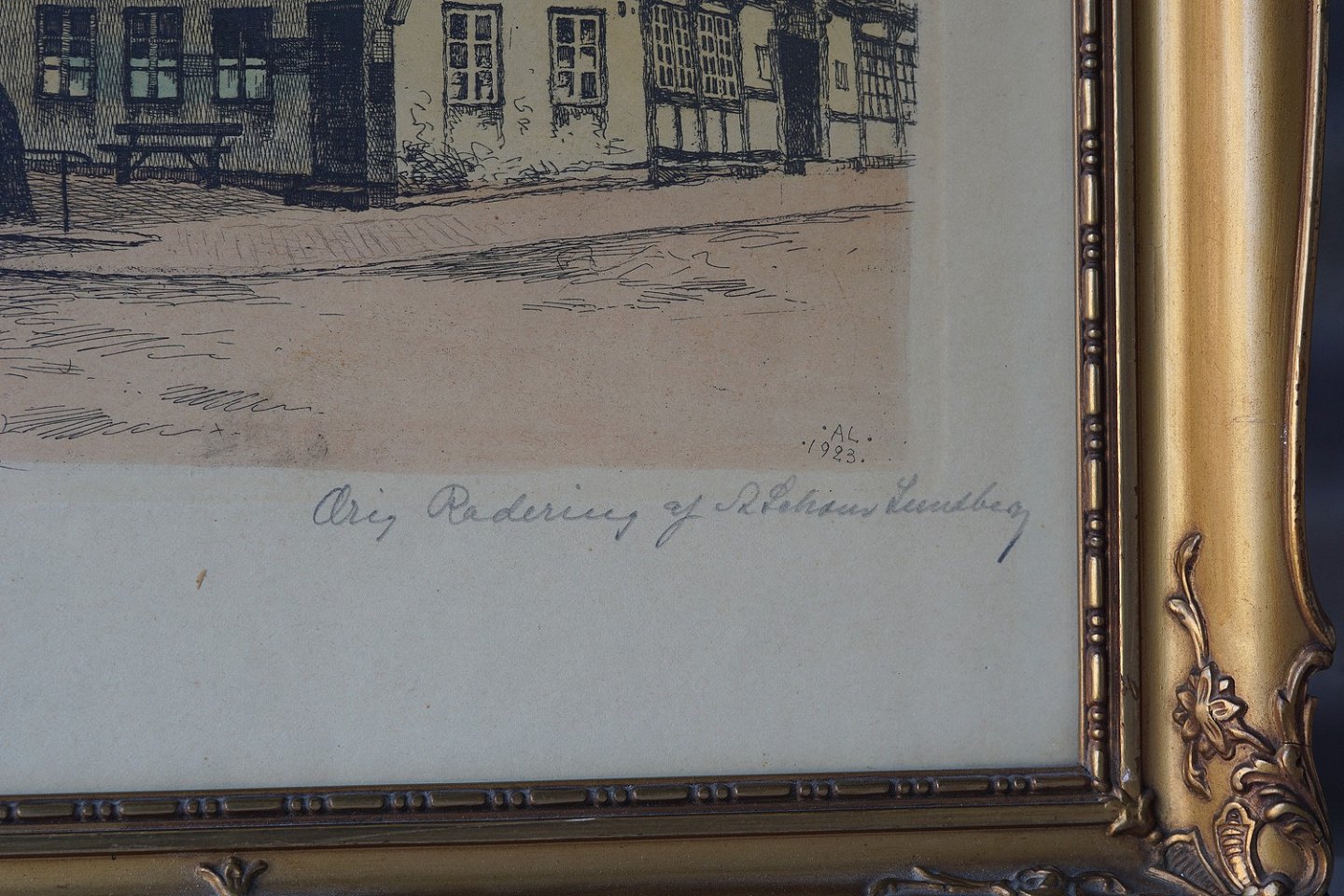 Original radering fra 1923 af "Det Blå Hjørne" i Aalborg