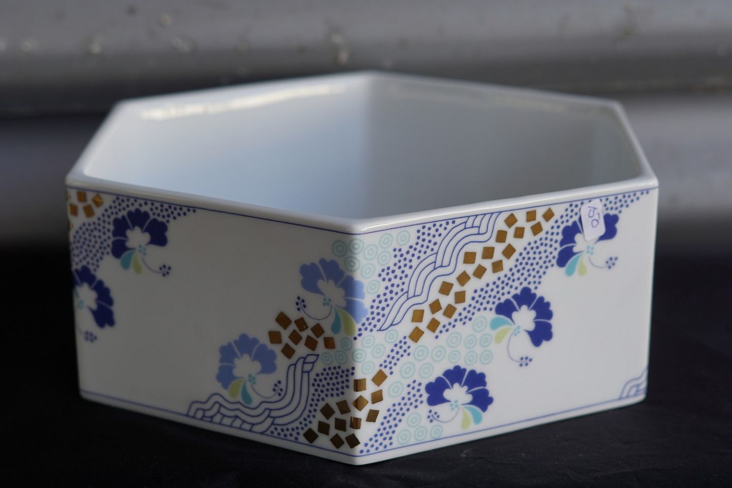 6-kantet skål 1817/5474 Porcelæn dekoreret med trykt motiv og guld
