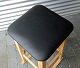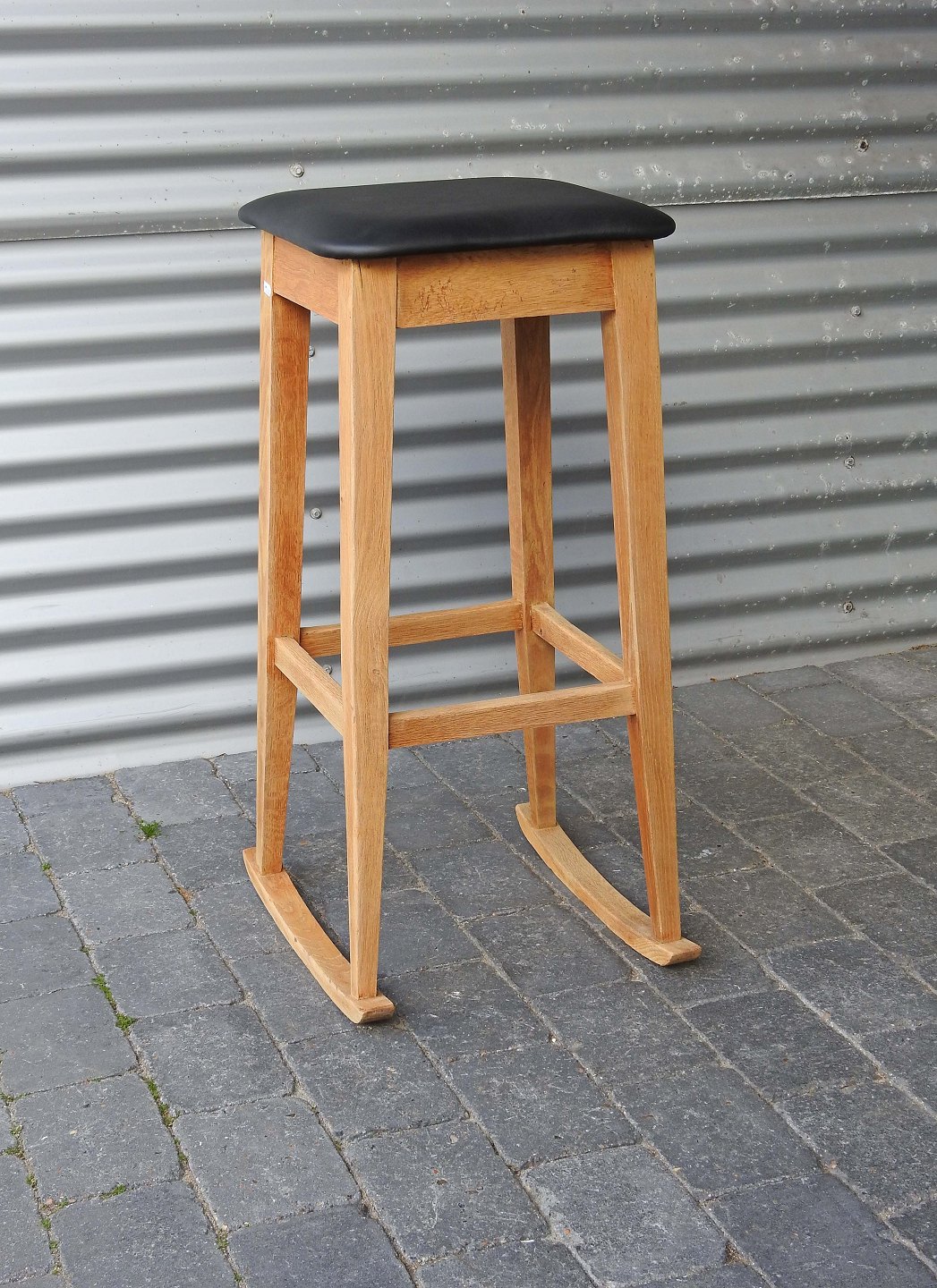 Barstol i eg med gyngeeffekt og med nypolstret sæde i sort læder
