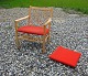 Armstol med stel af lakeret bøgetræ og polstret med rødt uldstof