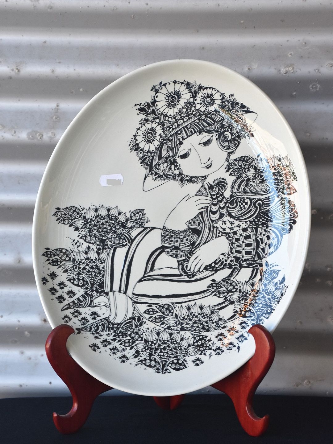 Oval platte med sort dekor, nr. 3571, "Paloma"