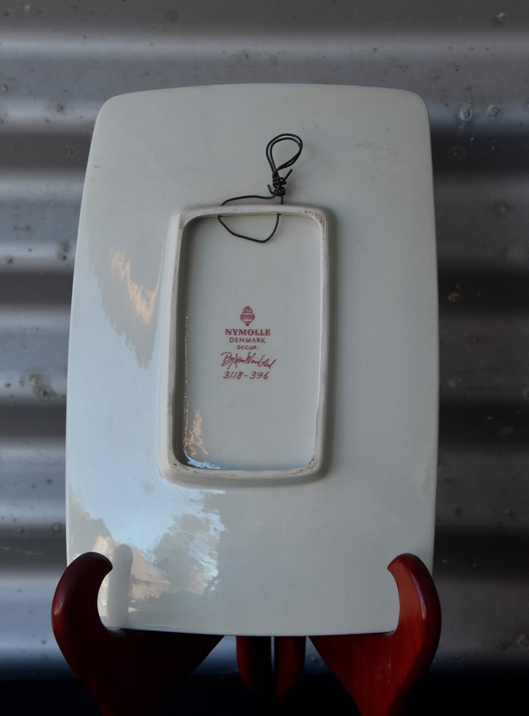 Aflang platte nr. 3118-396. Dekor er med rød streg, to damer med blomst.