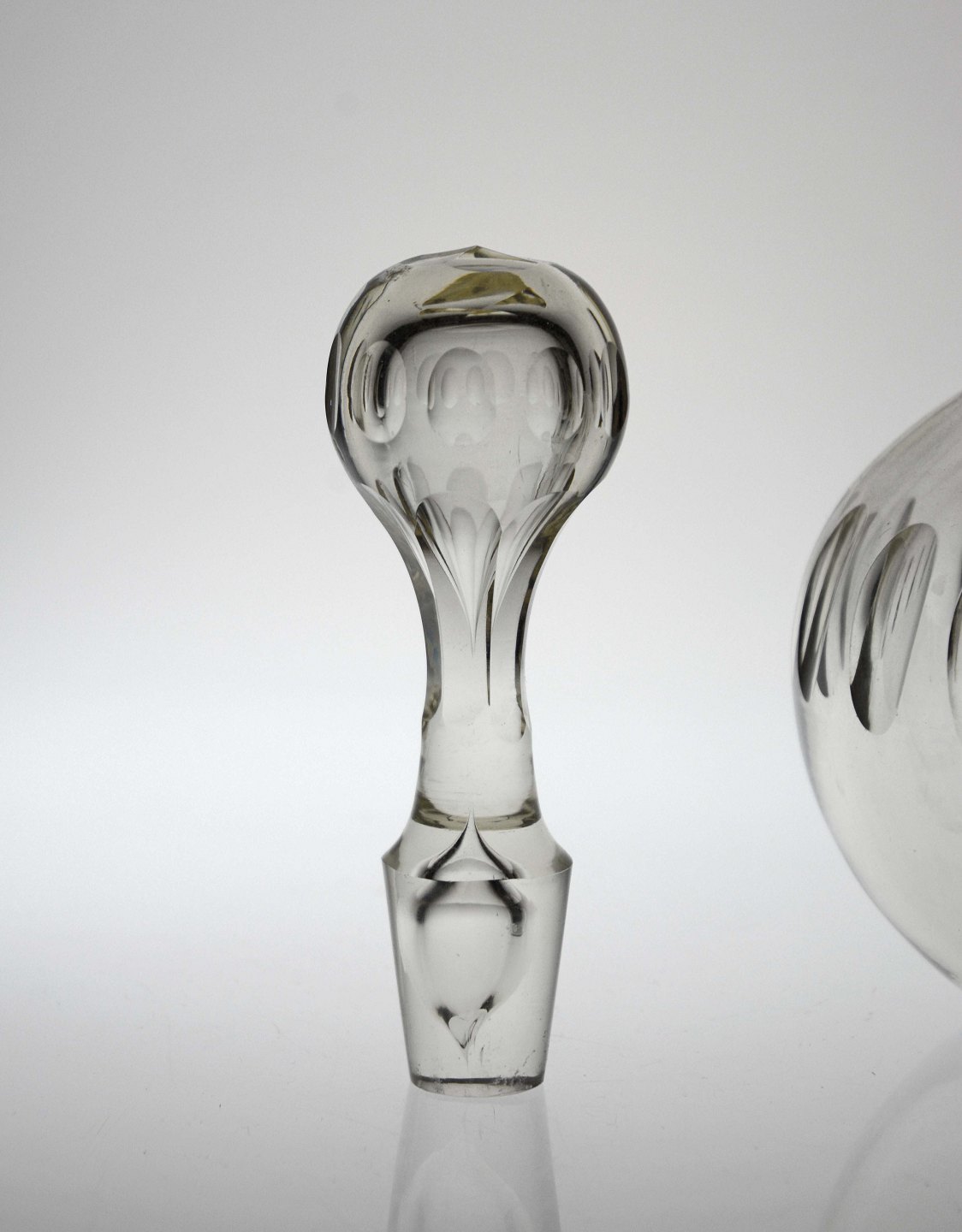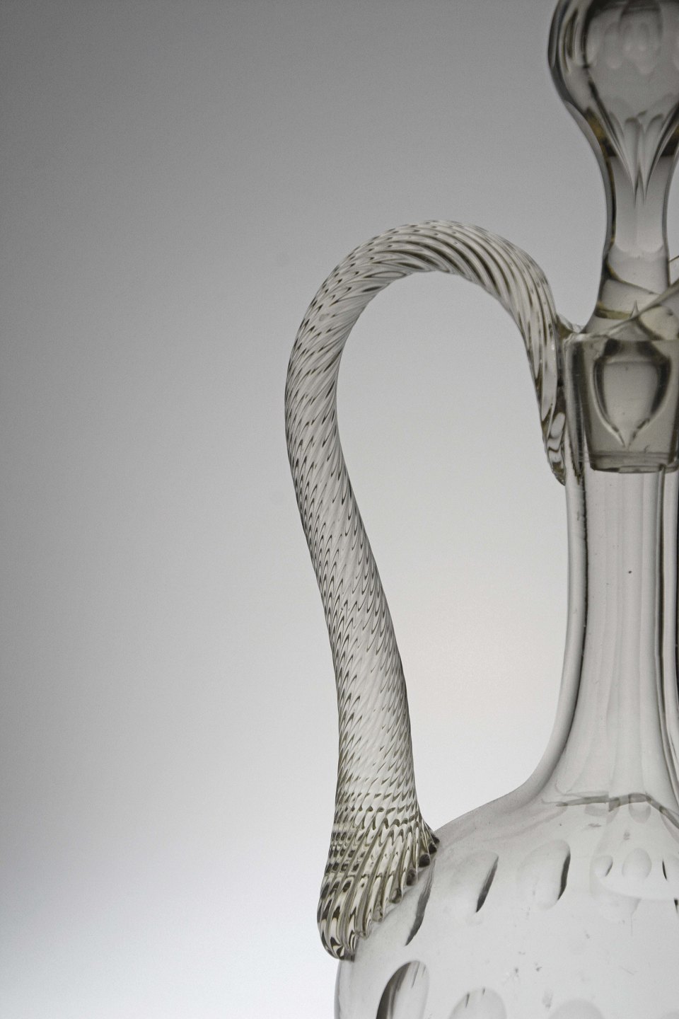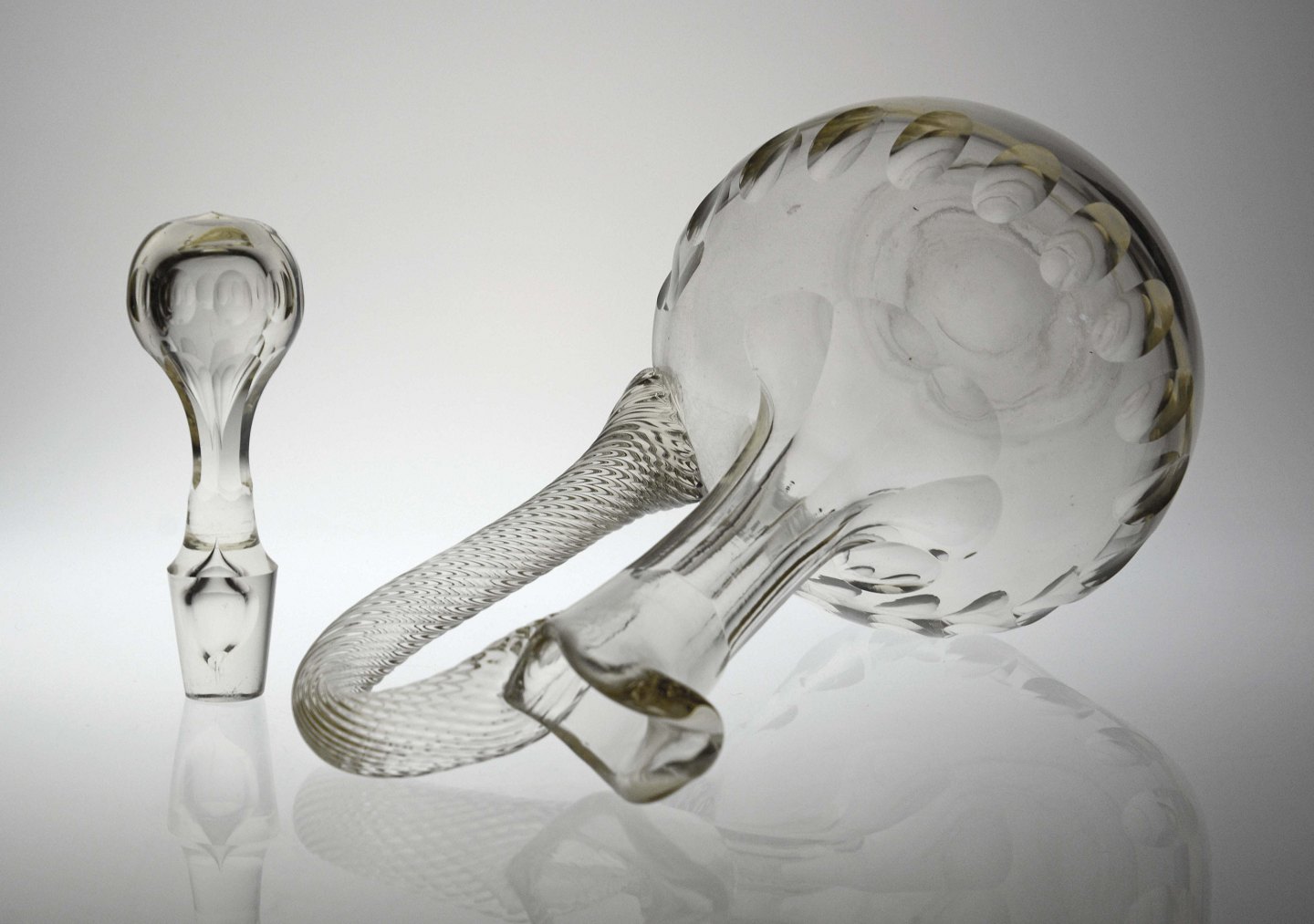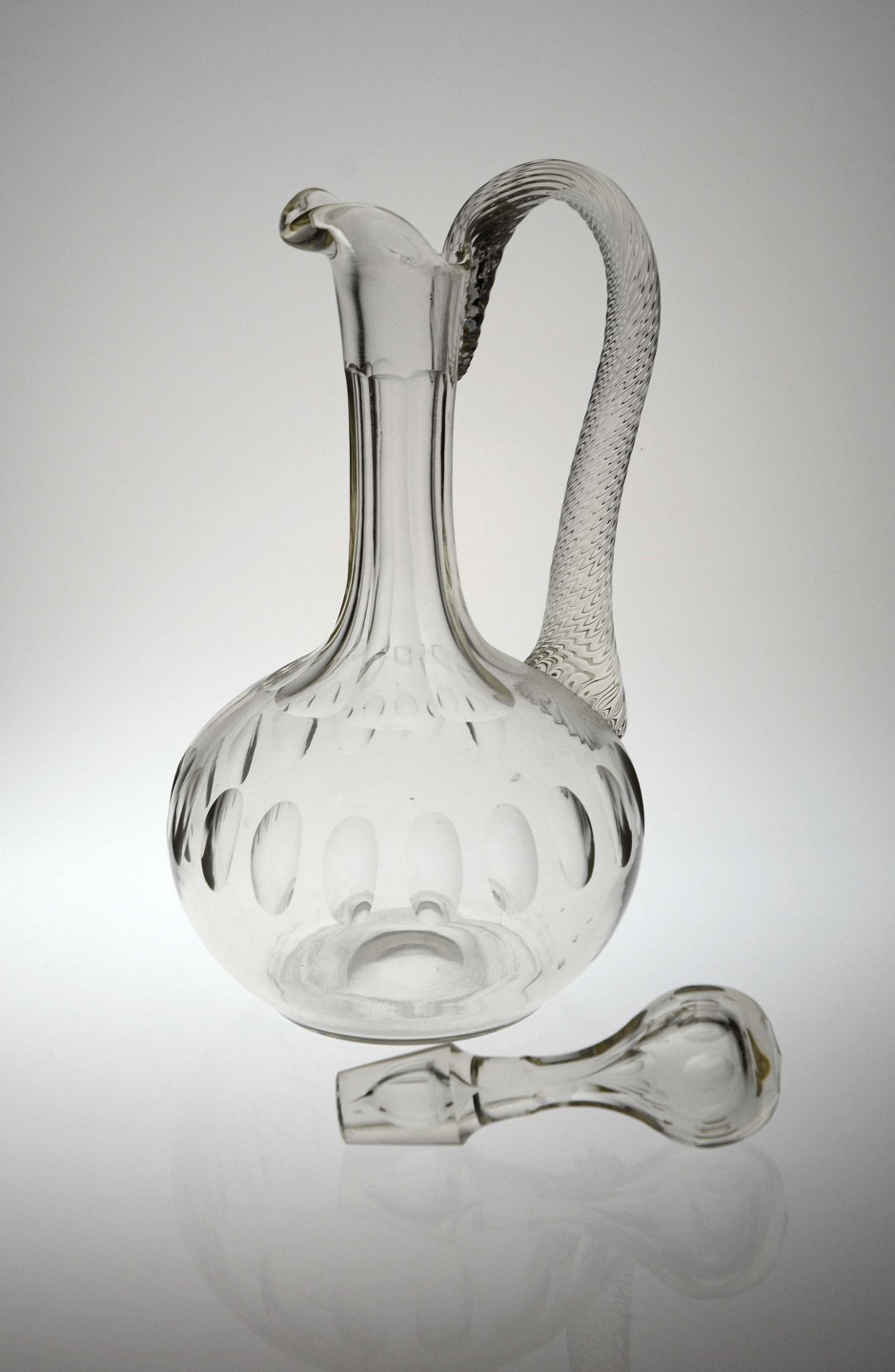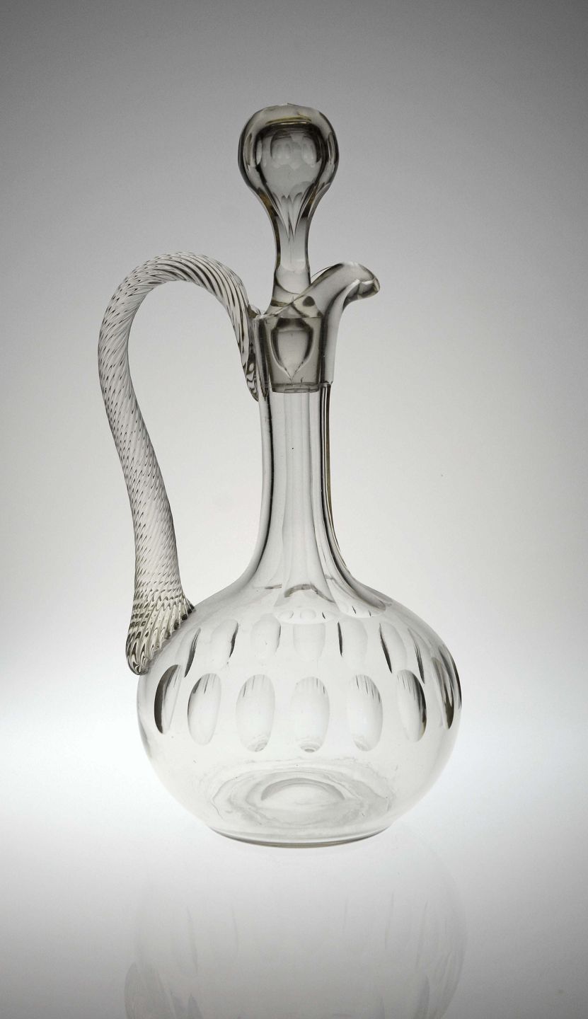 Glaskaraffel med prop og snoet hank