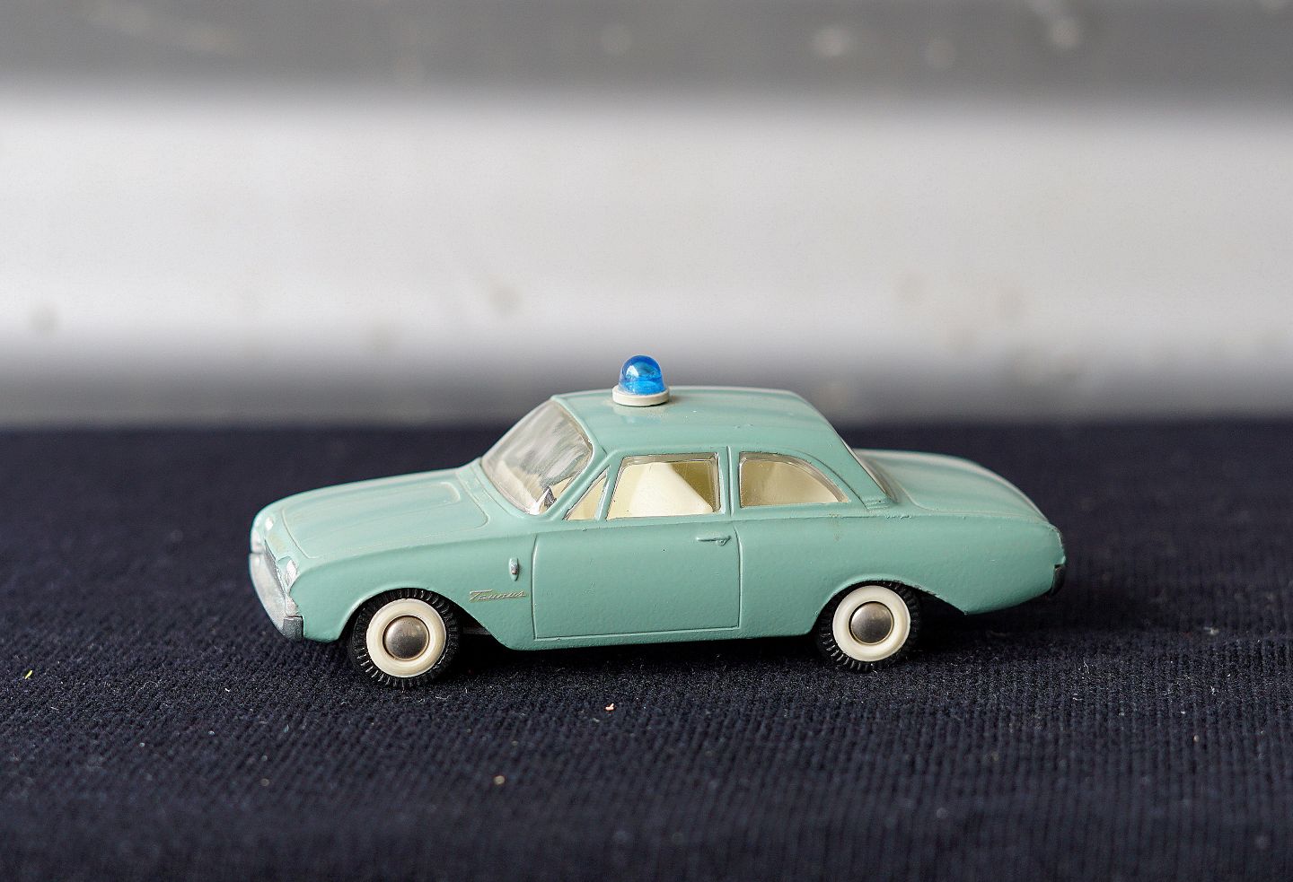 Ford Tanus 17M, nr.828. Bilen er en politibil med sirene og stopskilt i bagruden, i flot stand