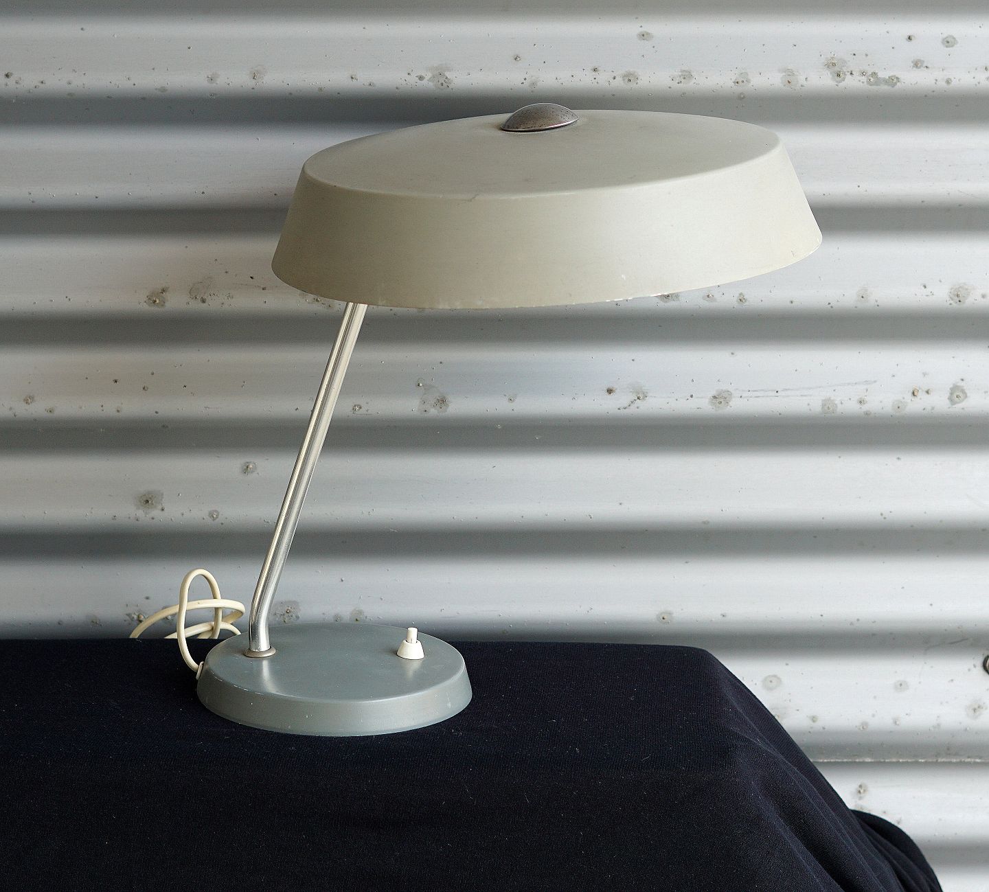 Tysk Industri lampe, fra DDR. Stål, der er malet mat gråt, lampen har patina, Stasi lampe