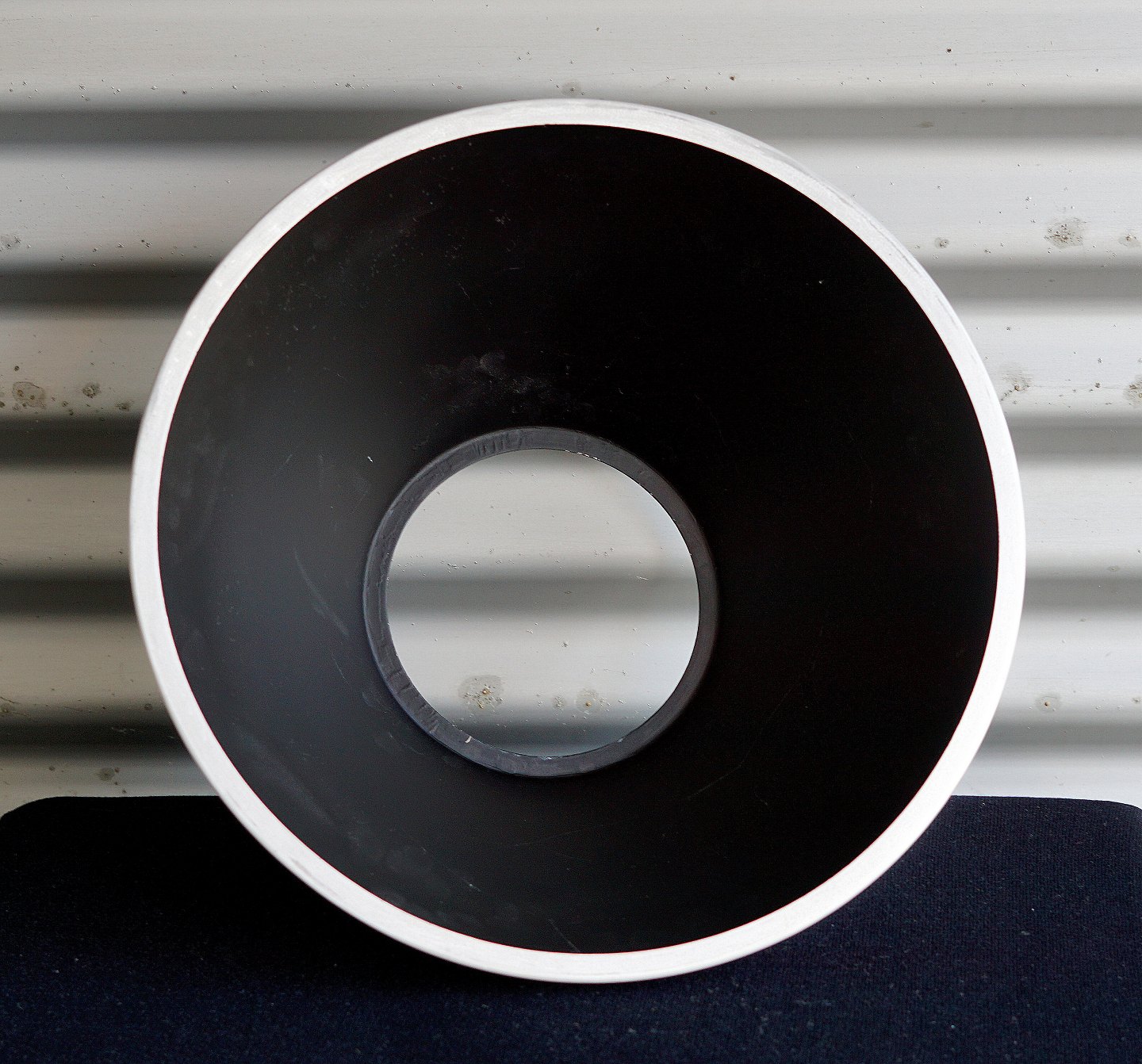 Bordlampe med stålskærm, skærmen er aftagelig. Lampefoden er mat sort lakeret, skærmen er børstet stål
