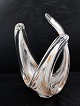 Skulpturel glas skål, lavet i opalglas med røde glassten som indlæg og klart glas som overfang