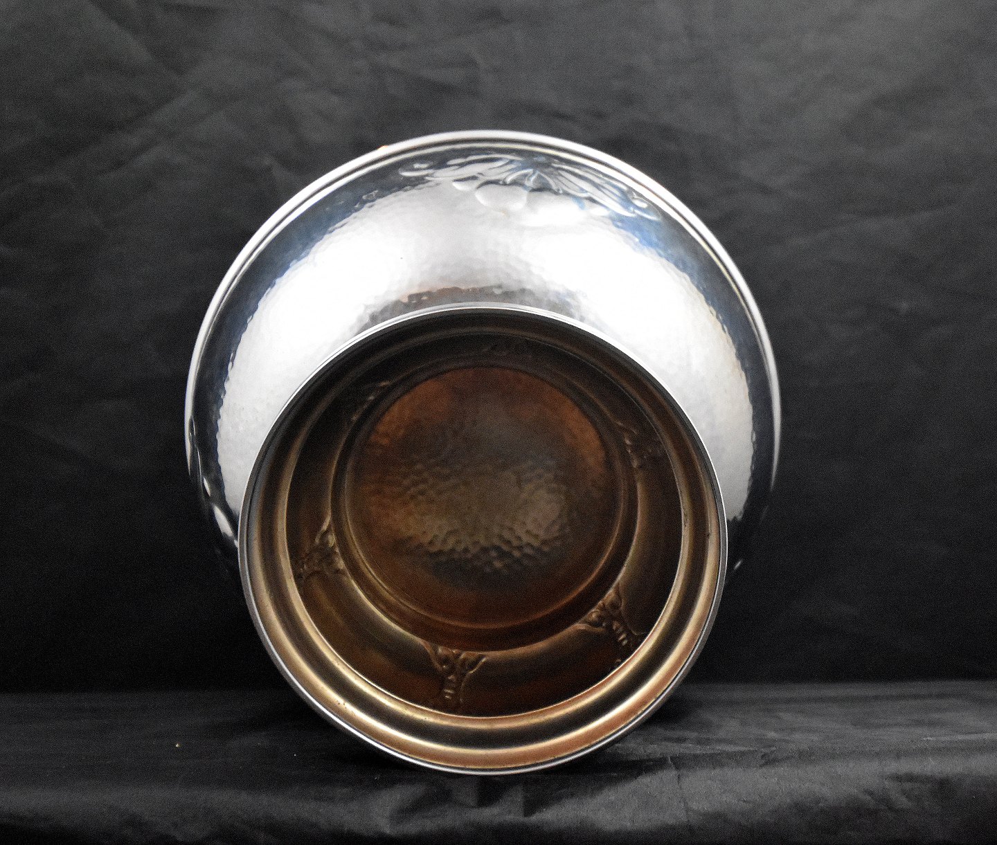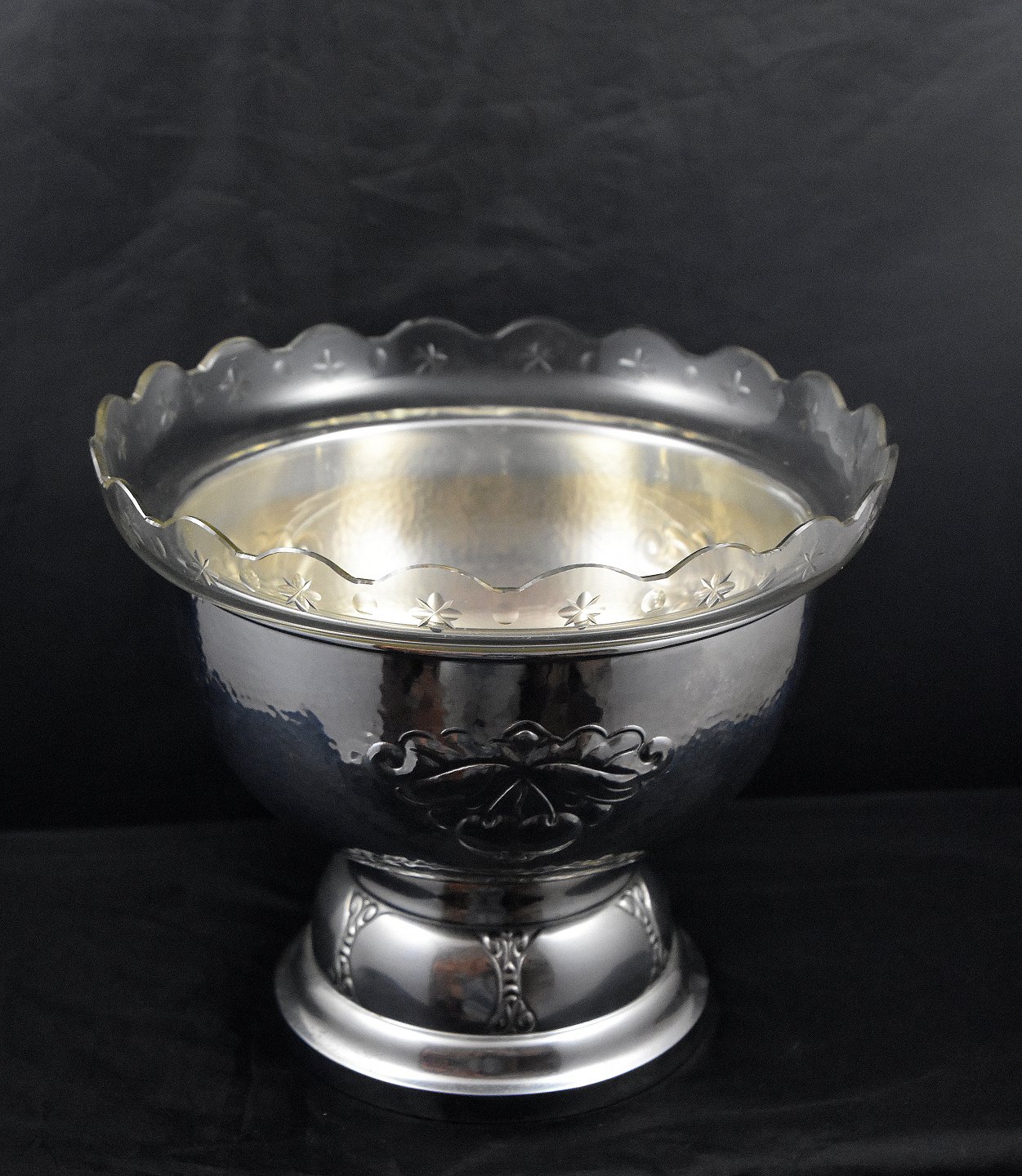 Skønvirke sølvplet opsats med indsats i form af glasskål