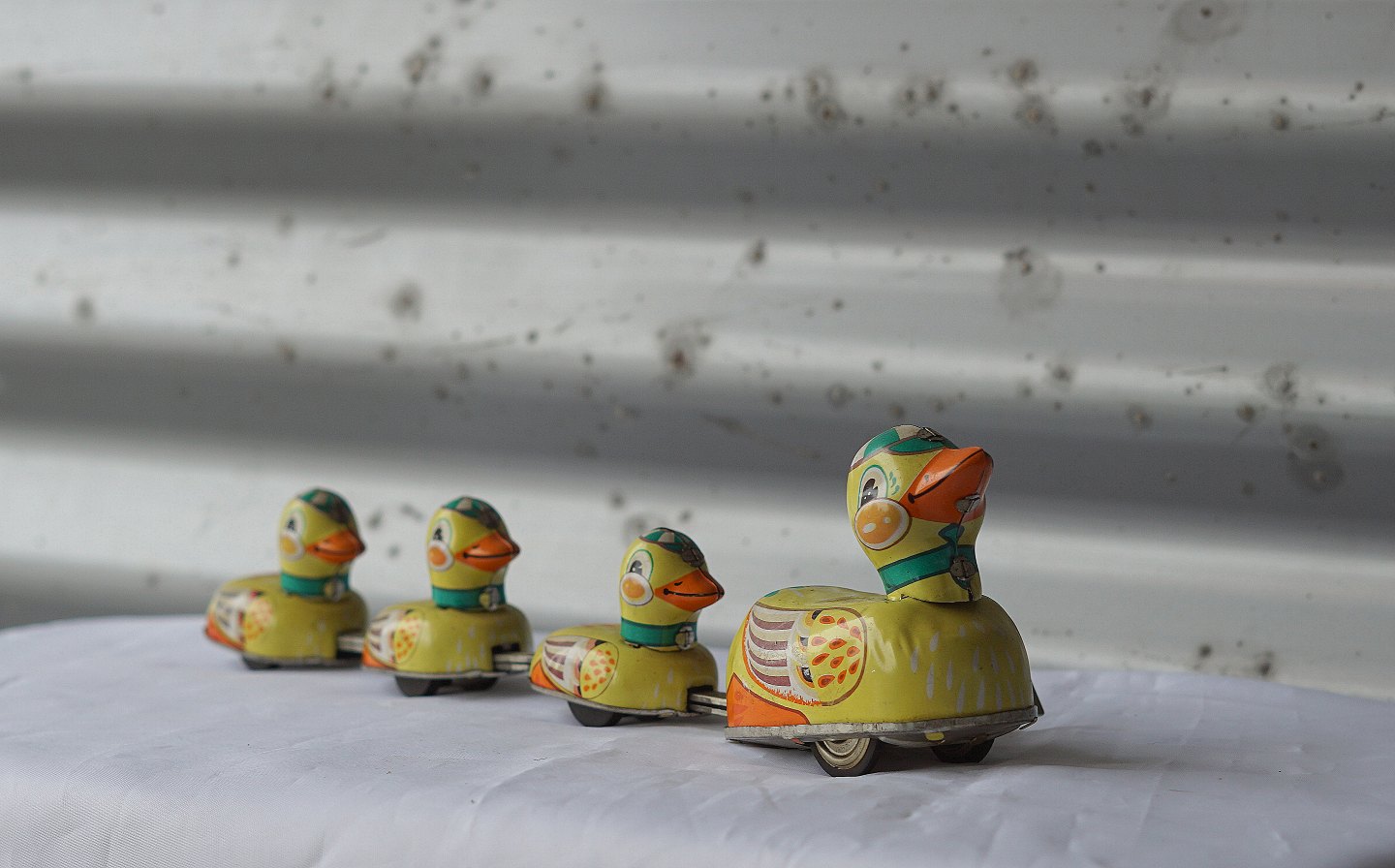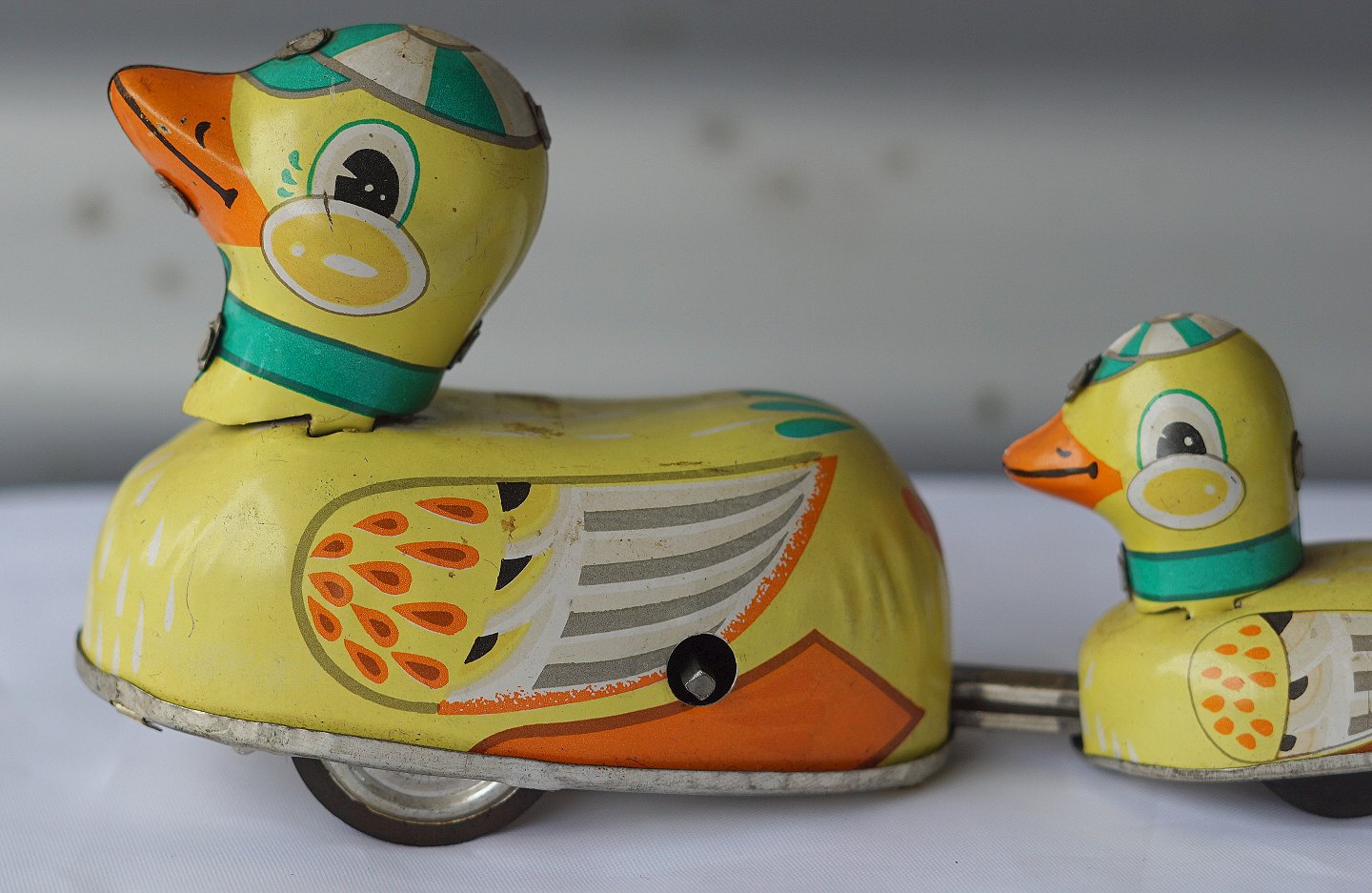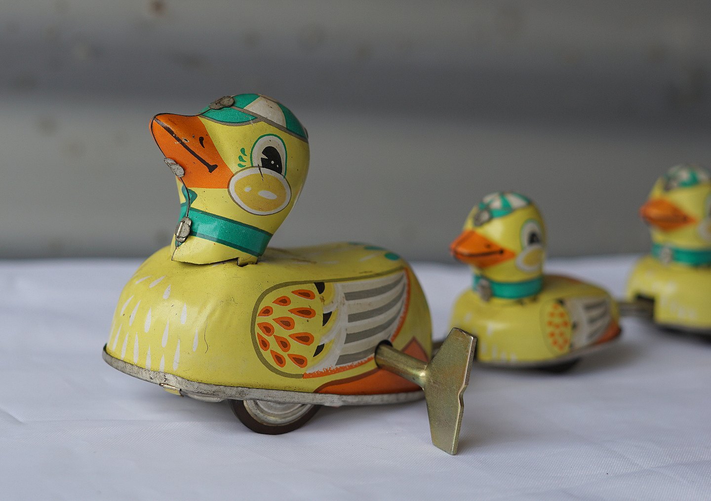 Andefamilie, der kan trækkes op. Med nøgle og fin stand.