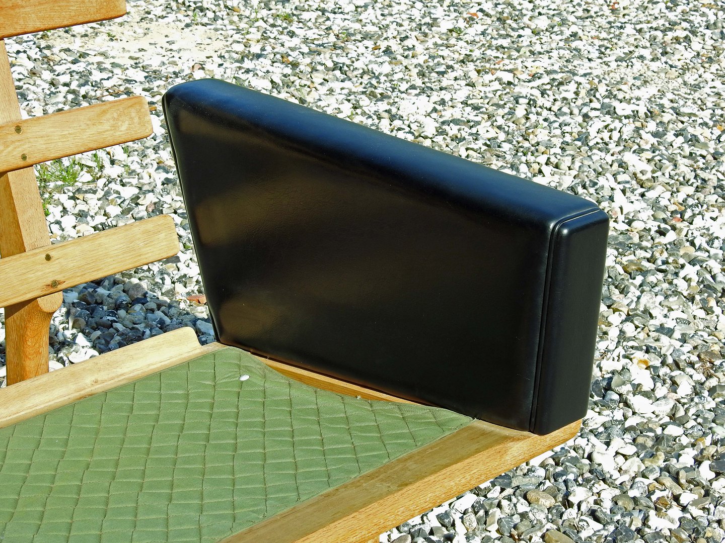 3-personers sofa med egetræstel med grønne stofbetrukne springmadresser, og armlæn beklædt med sort nappe.