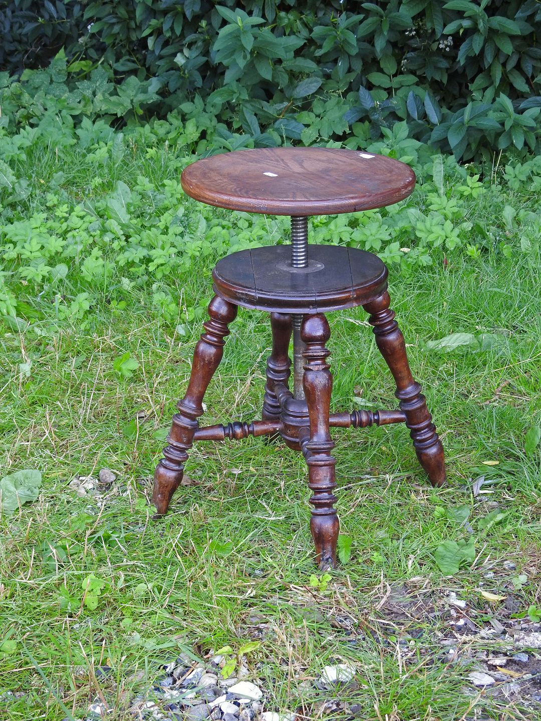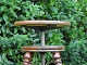 Skammel i ege med fire ben og sæde som skrues op og ned i i højden