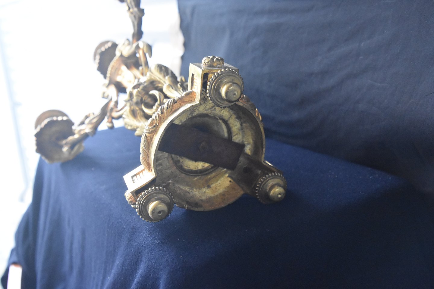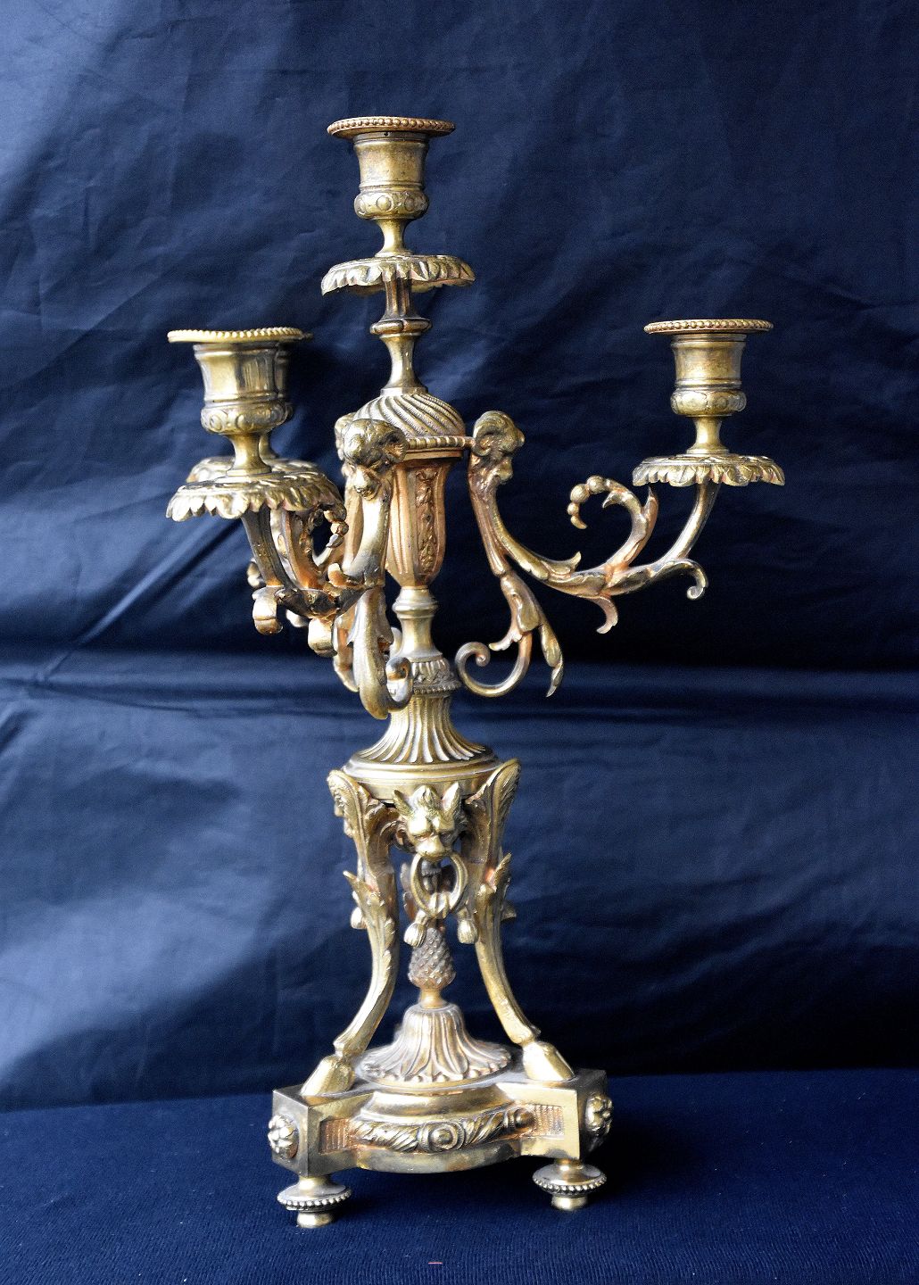 Antik, 5-armet, kandelaber, lysestage, patina, fransk
