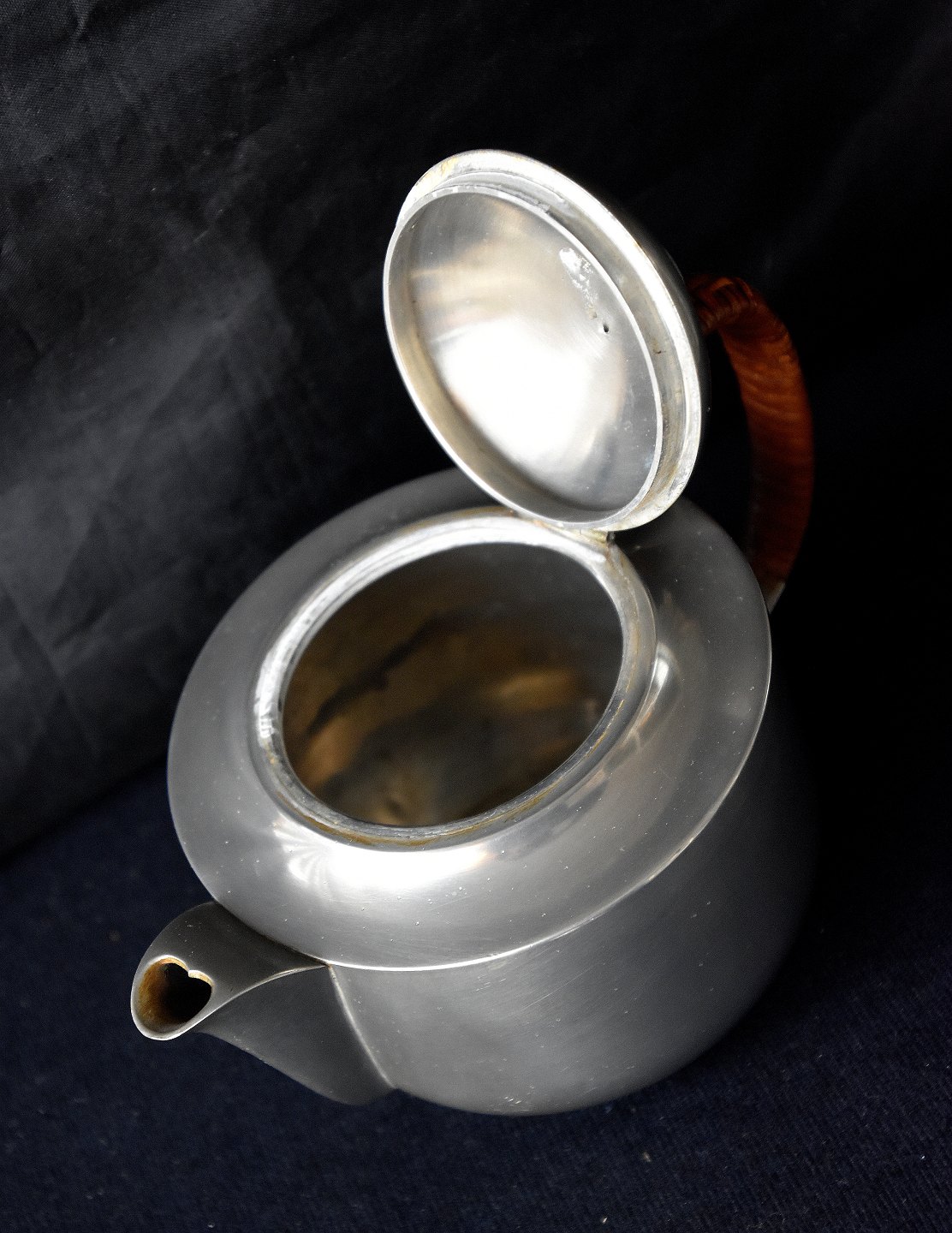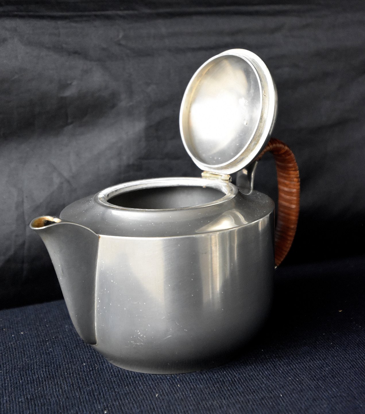 Tin Tekande nr. 1901 med vippelåg. Kanden er af tin med flet hank