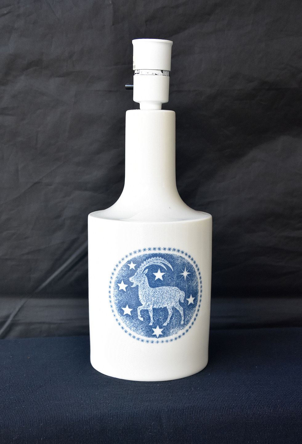 Bordlampe med motiv af "Stenbukken", nr. 927240, stjernetegn. Kun udført i 1200 eksemplarer. Fremstillet hos Royal Copenhagen for Fog & Mørup