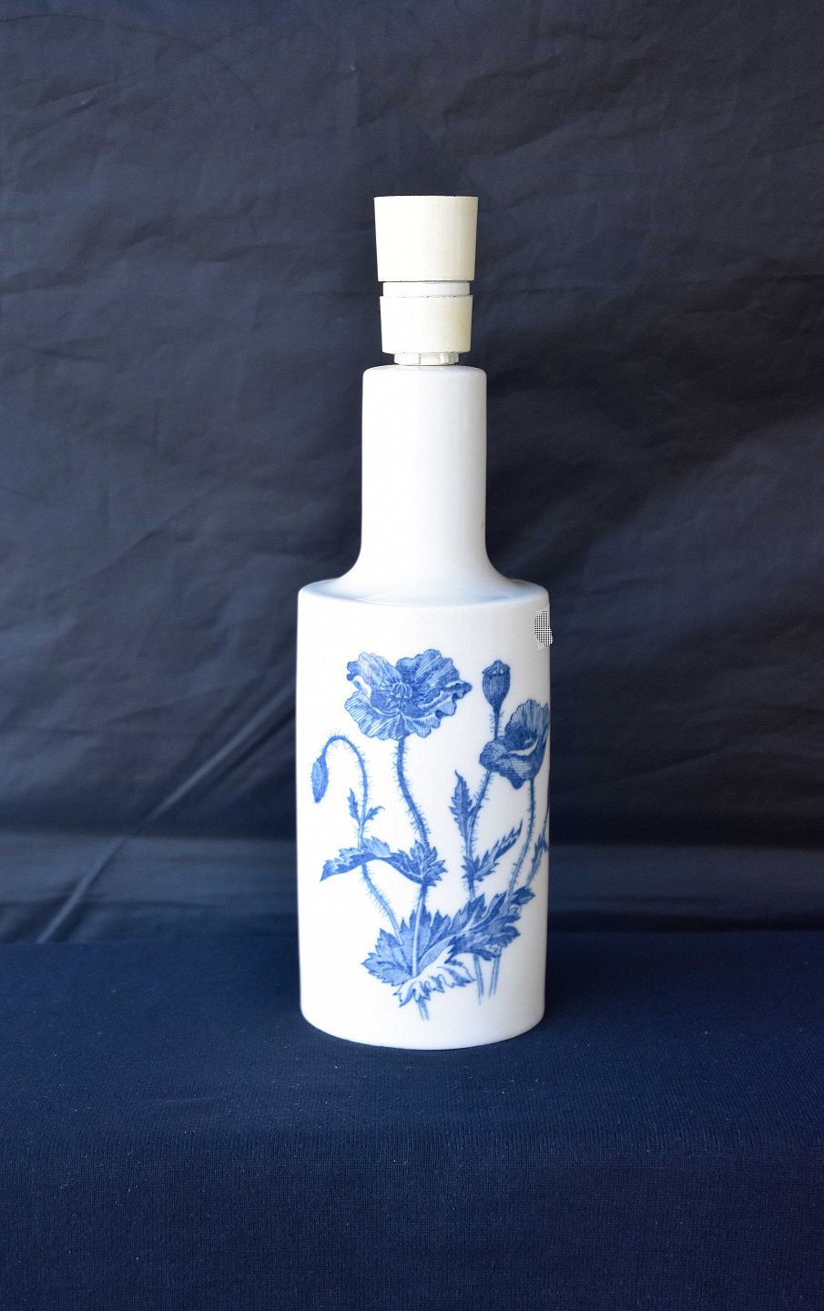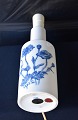 Bordlampe i kongelig porcelæn, dekoreret med blå valmuer og teksten Valmue, Papaver Dubium. Nr. 4622