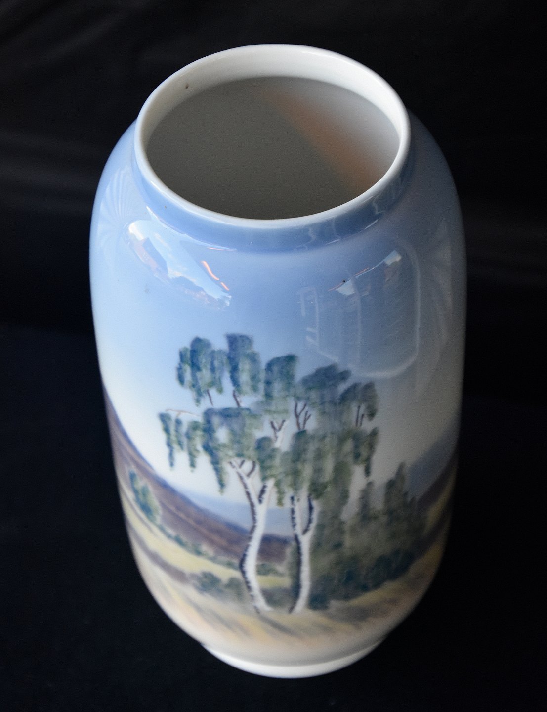 Royal Copenhagen vase, 2889/107, dekoration forestiller Himmelbjerget og 1 birketræ