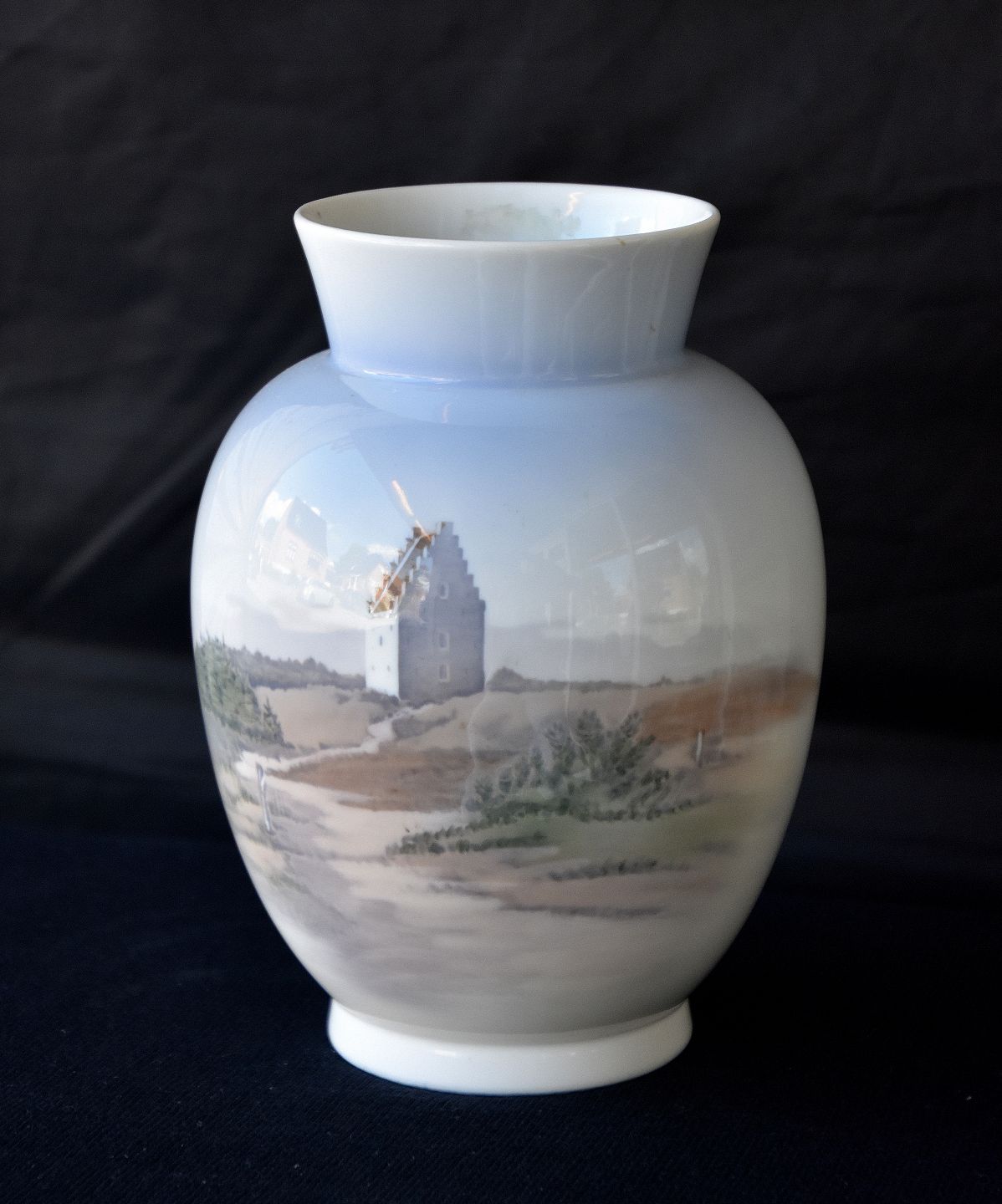 Royal Copenhagen vase, 4661, dekoration af Den tilsandet Kirke i Skagen. Sct. Laurentius Kirke fra slutningen af 1930èrne