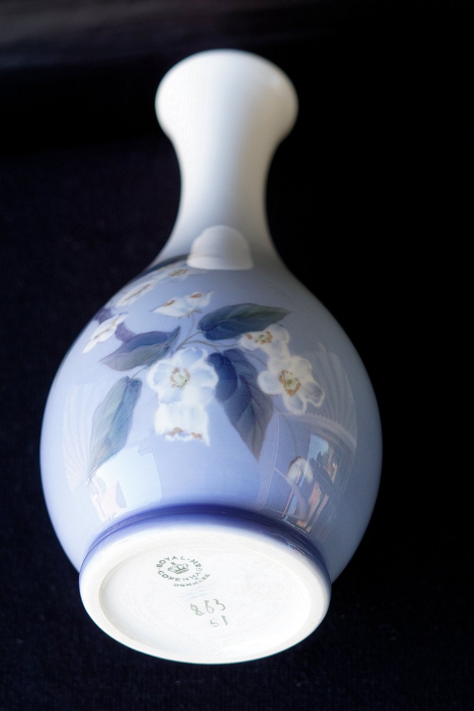 Royal Copenhagen, RC, Den Kongelige Porcelænsfabrik, KGL., blomster, gren, blomstergren, hvide, blomster, vase, porcelæn