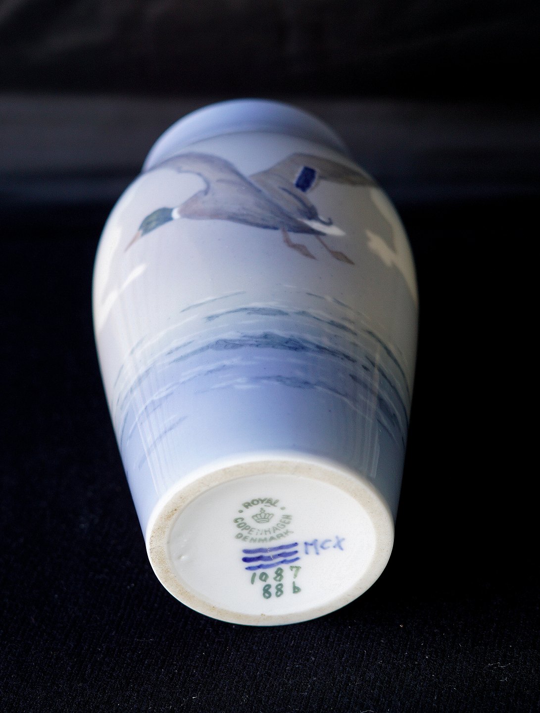 Royal Copenhagen, vase 1087/886. Motivet er en gråand i flugt