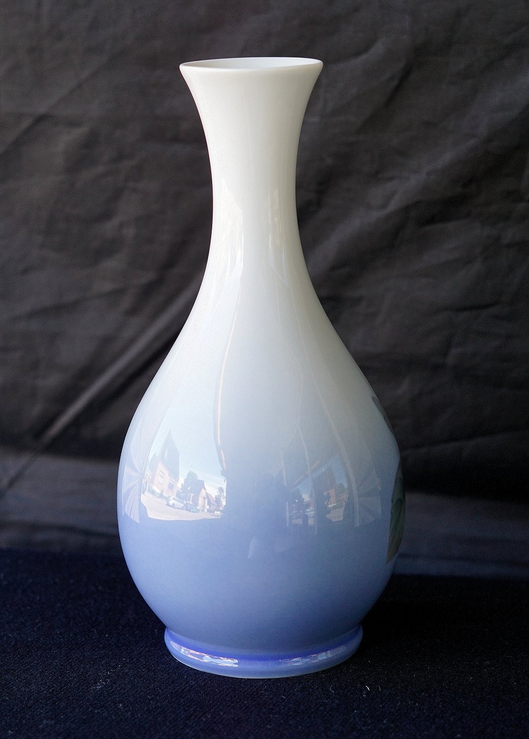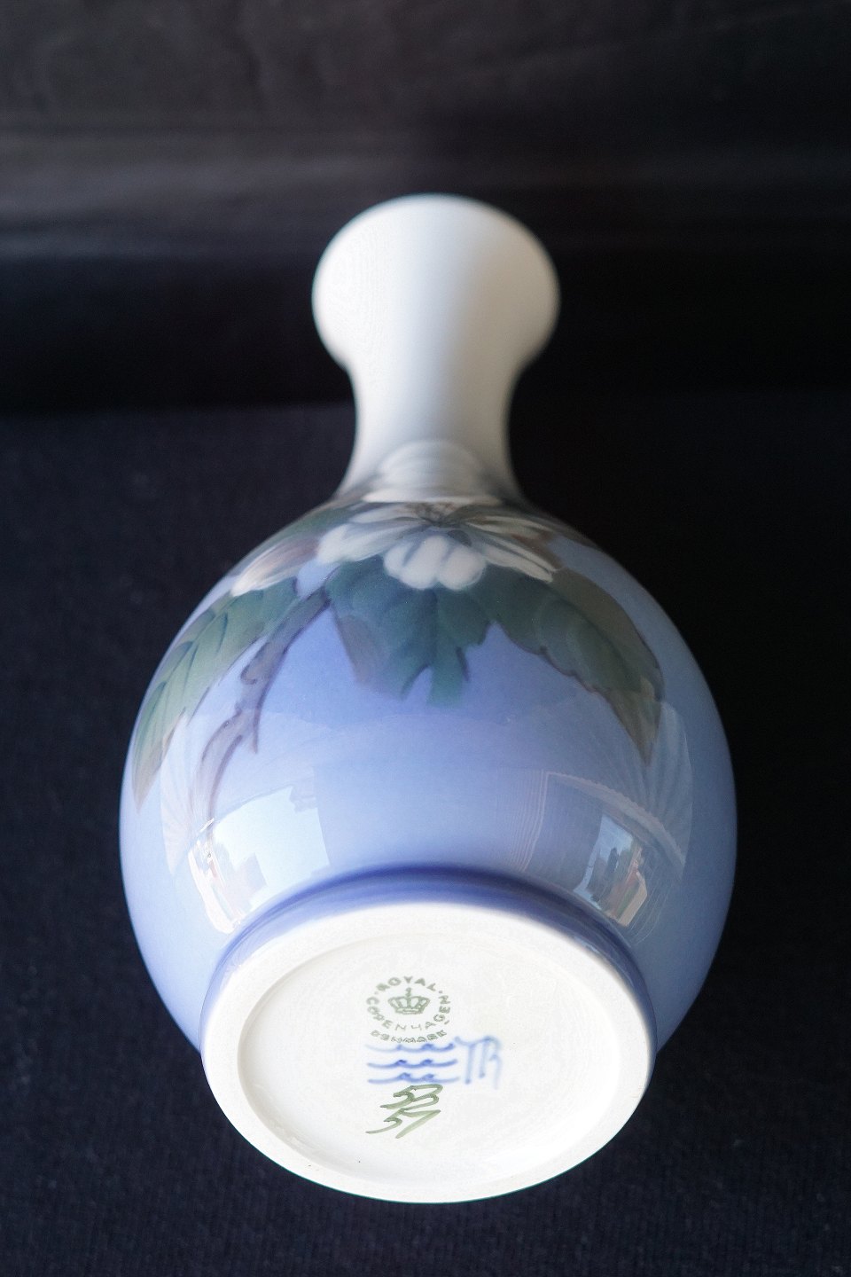 Royal Copenhagen, RC, Den Kongelige Porcelænsfabrik, KGL., blomster, hvide, grønne, blade, vase, pocelæn