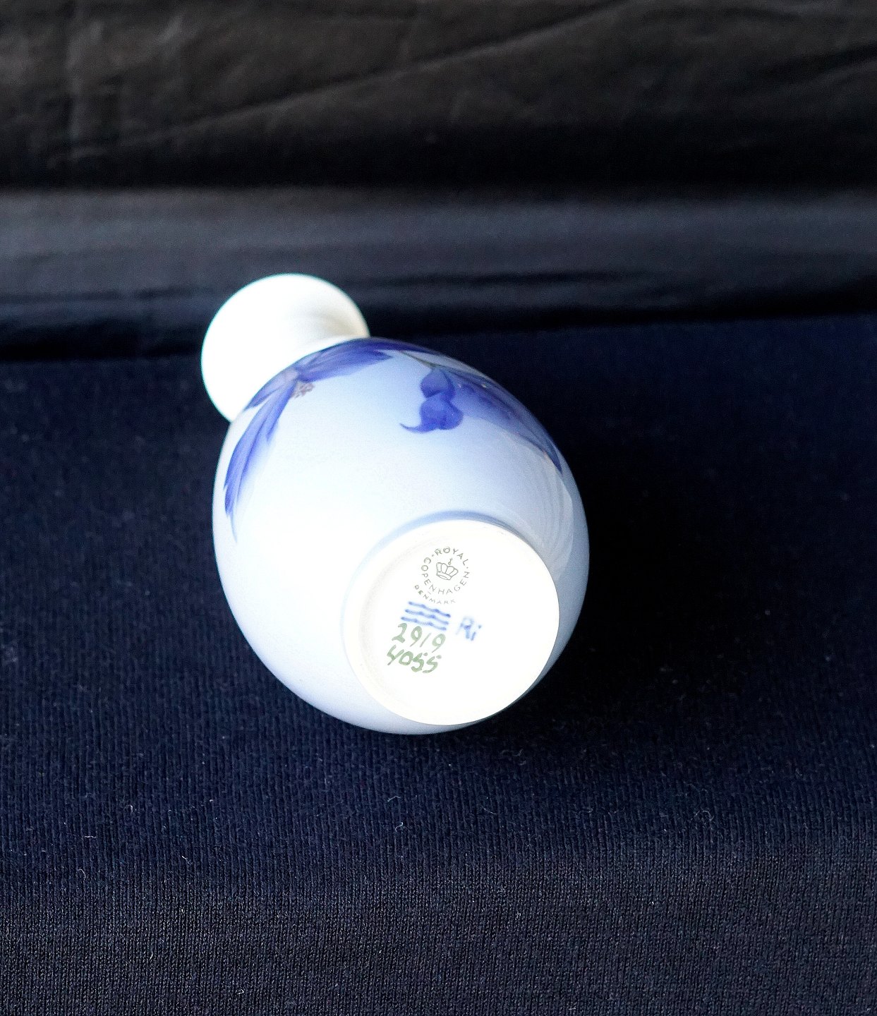 Royal Copenhagen, vase 2919/4055. Vasen er dekoreret med blå blomster