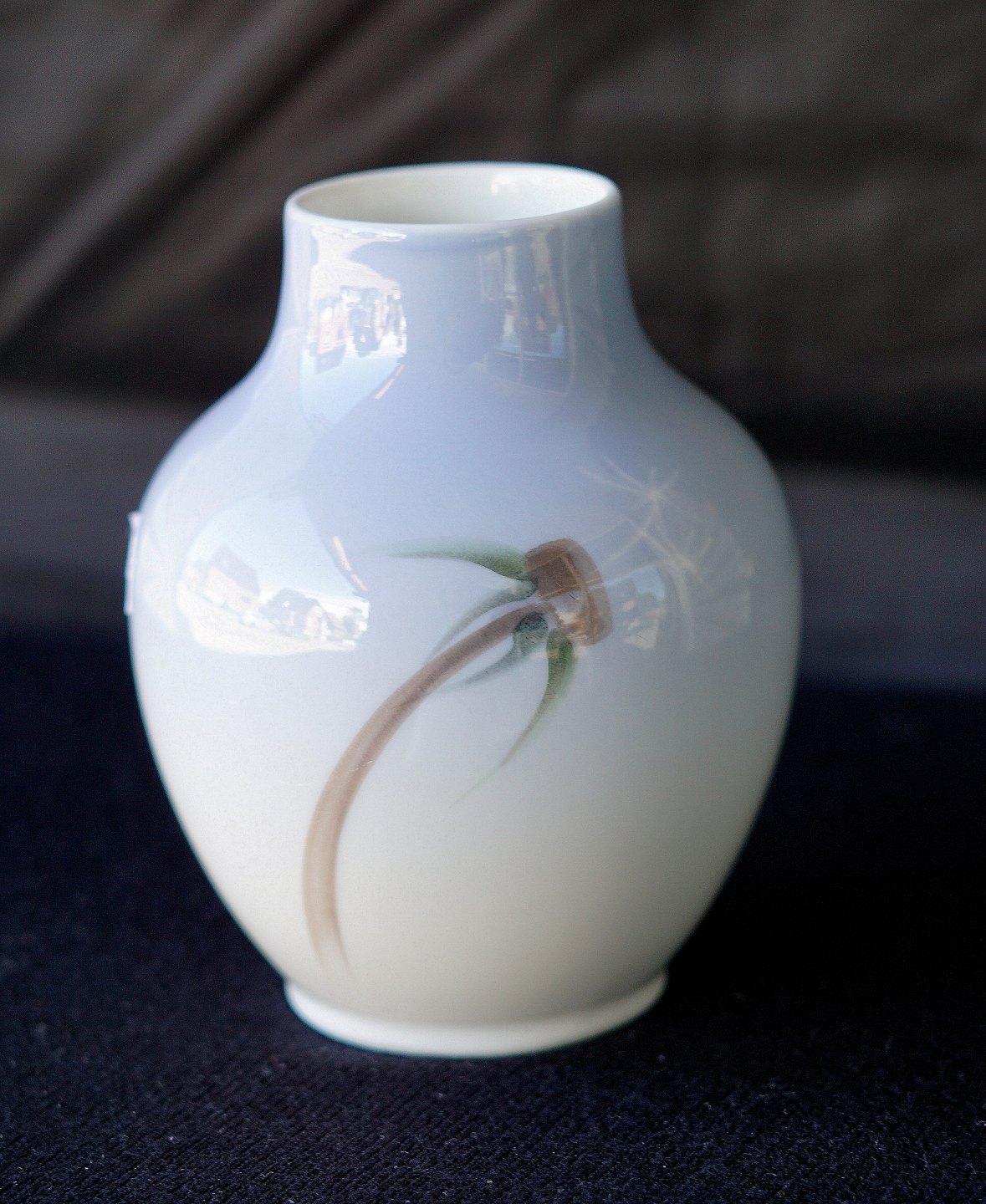 Royal Copenhagen, vase 2136/45A. Vasen er dekoreret med 2 udsprungne mælkebøtter, bagsiden er dekoreret med 1 vissen mælkebøtte