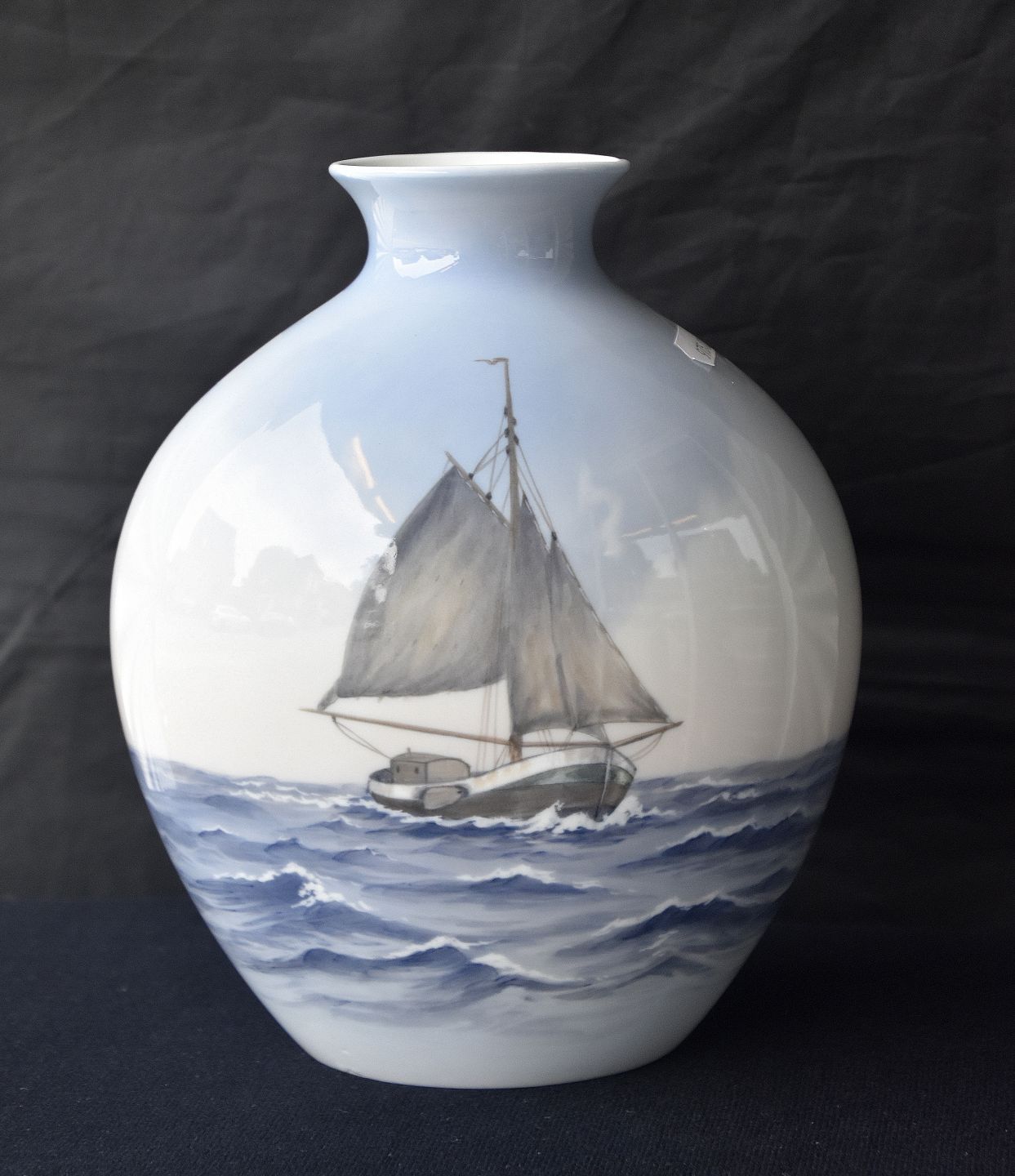 Bing & Grøndahl, B&G, oval, sejlskib, bølger, porcelæn, vase