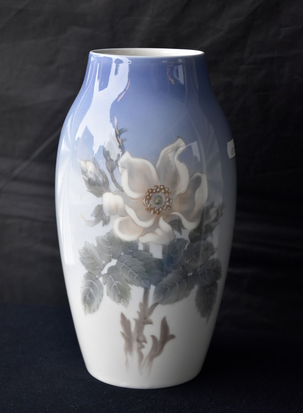 Bing & Grøndahl, B&G, porcelæn, vase, vild rose, hyben, rose