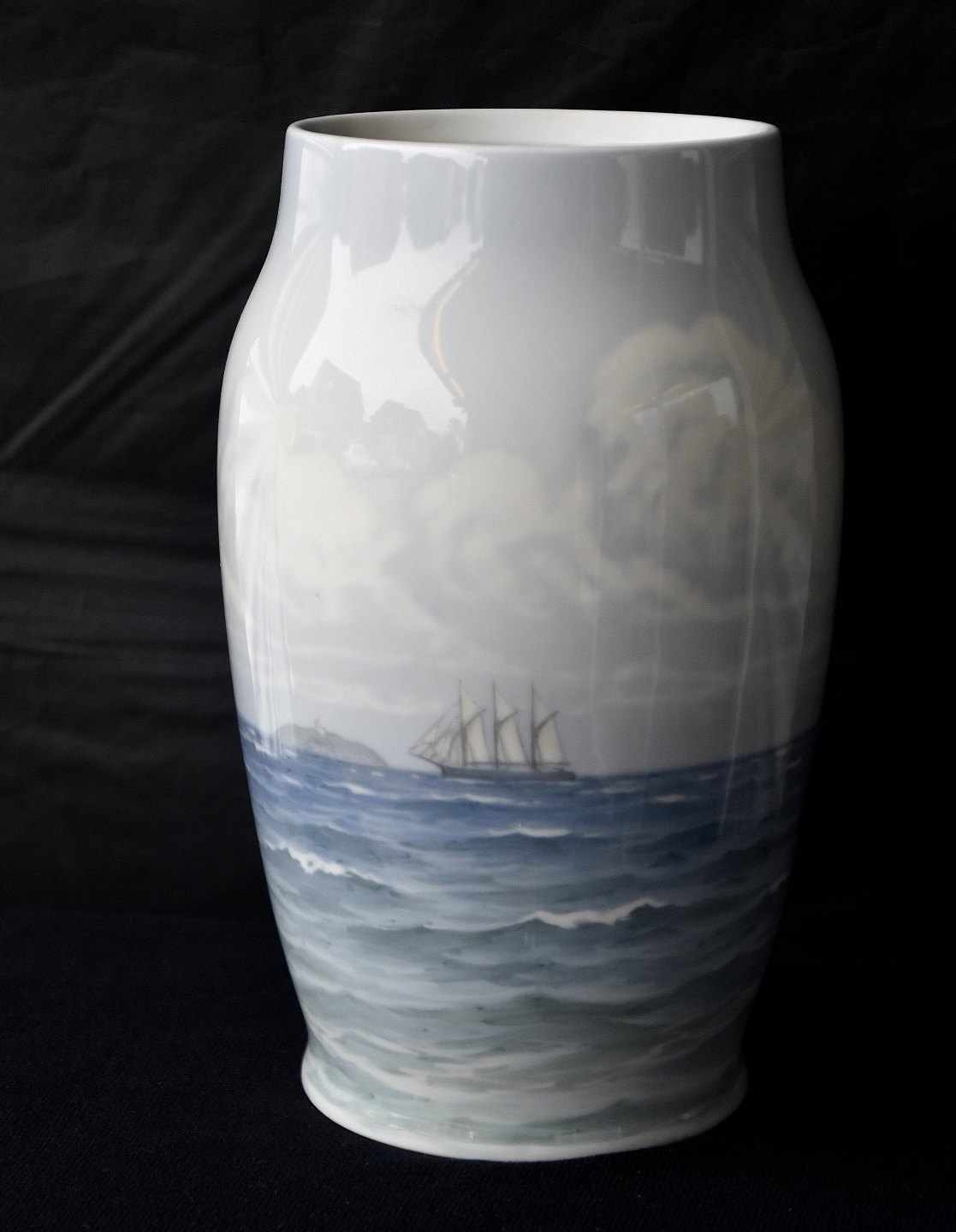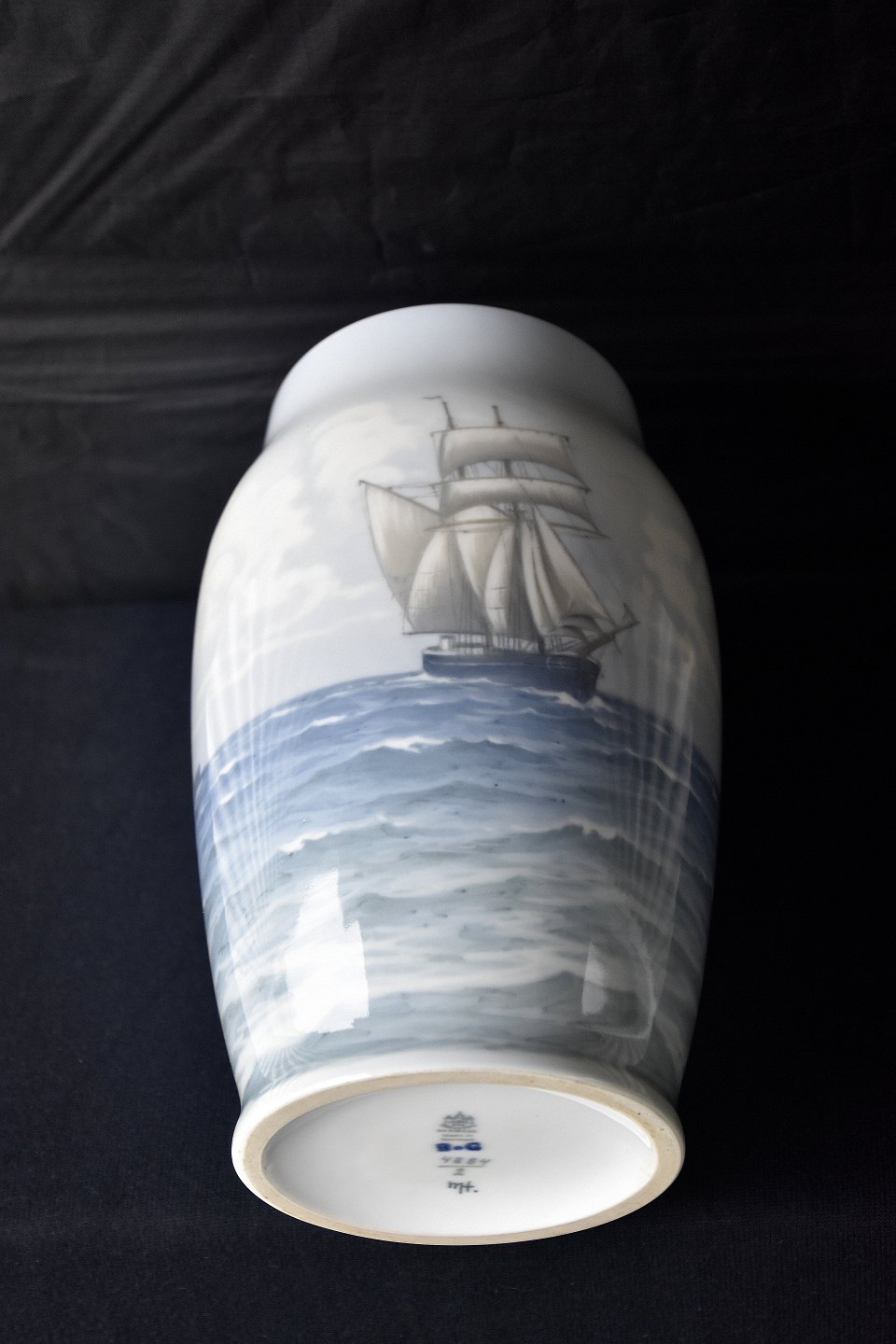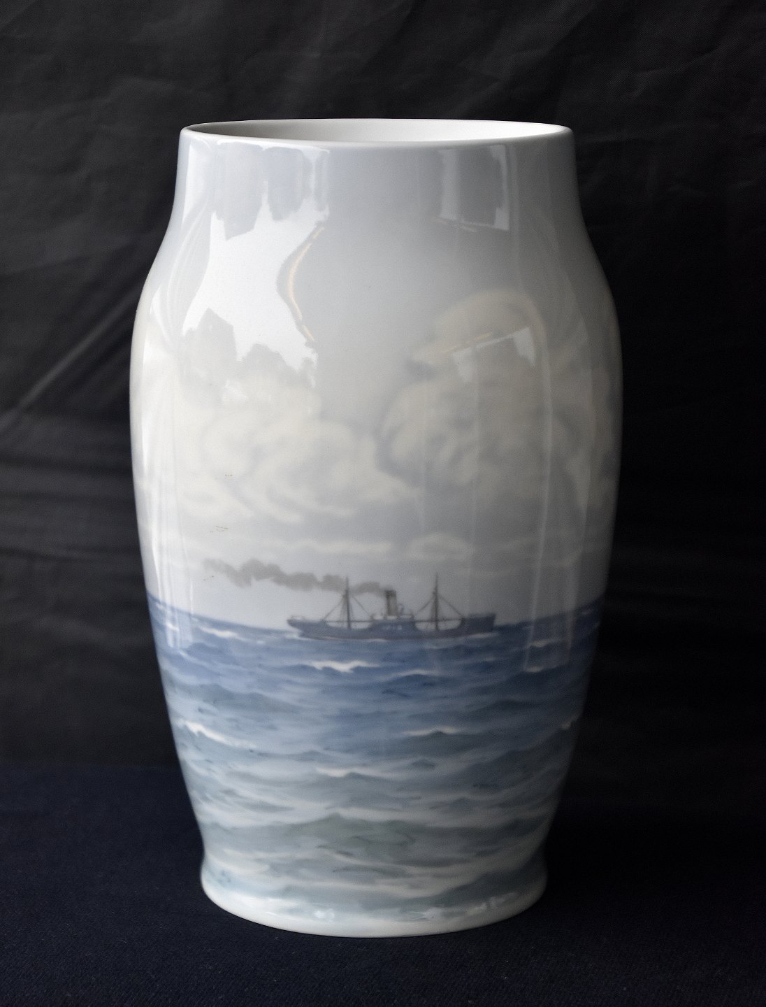 Bing & Grøndahl, B&G, porcelæn, vase, skibe, skonnert, sejlskib, motorskib