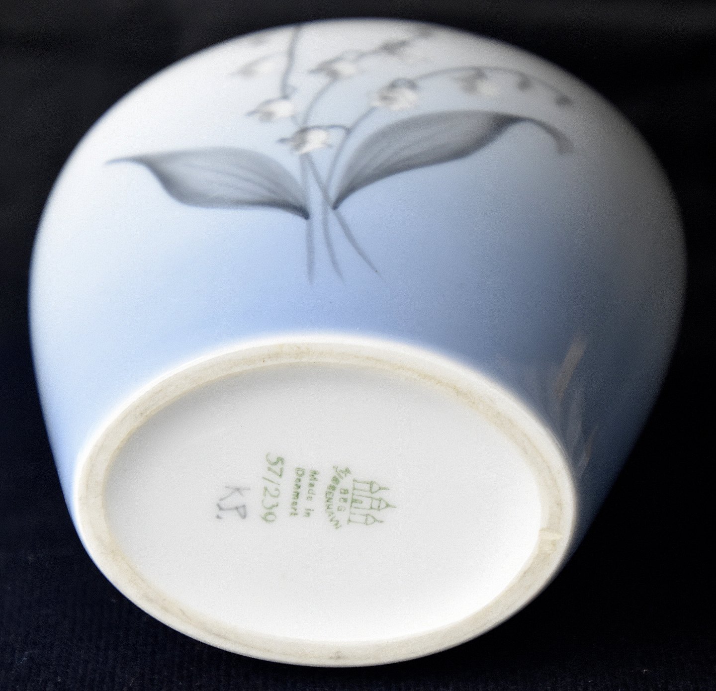 Bing & Grøndahl, vase 57-239, vasen er oval, 1. sortering. Dekoration på vasen er en enkelt liljekonval