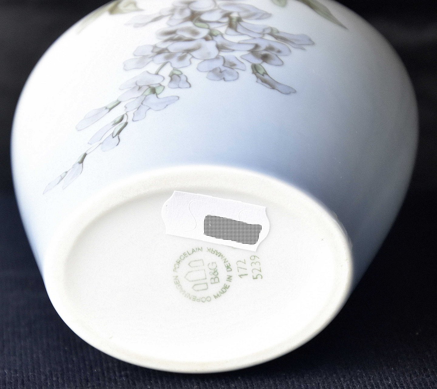 Bing & Grøndahl, vase 172-5239 vase er oval, 1. sortering. Vasen er dekoreret med en gren af blåregn