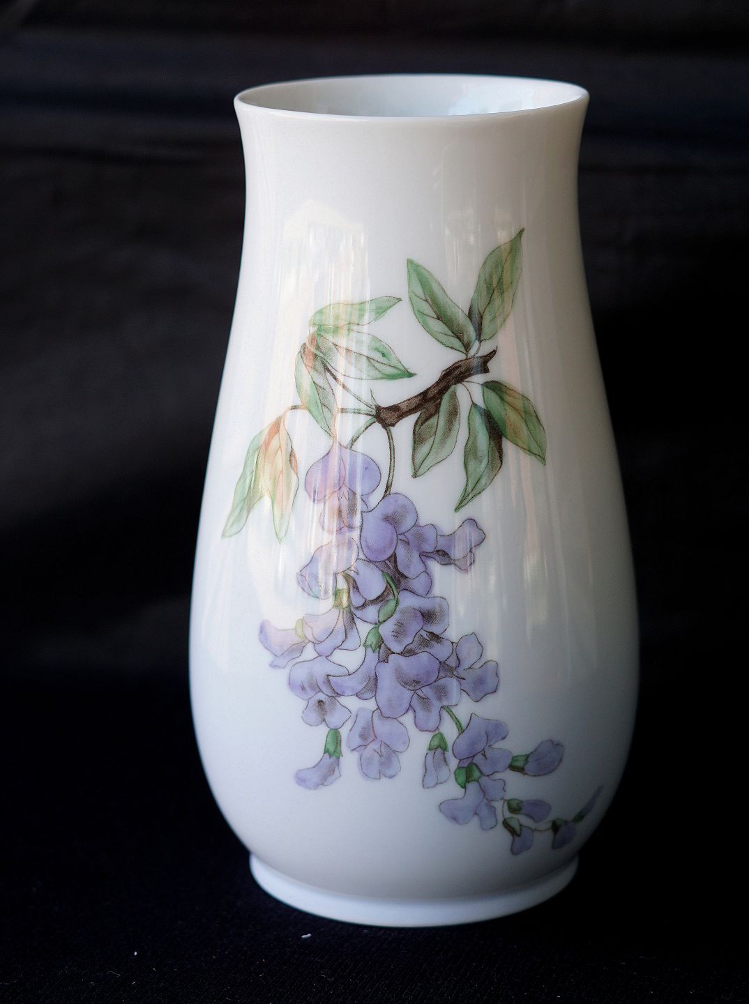 Bing & Grøndahl, Vase 5772-210. Vasen er 1. sortering. Dekorationen er en gren af blåregn med grønne blade
