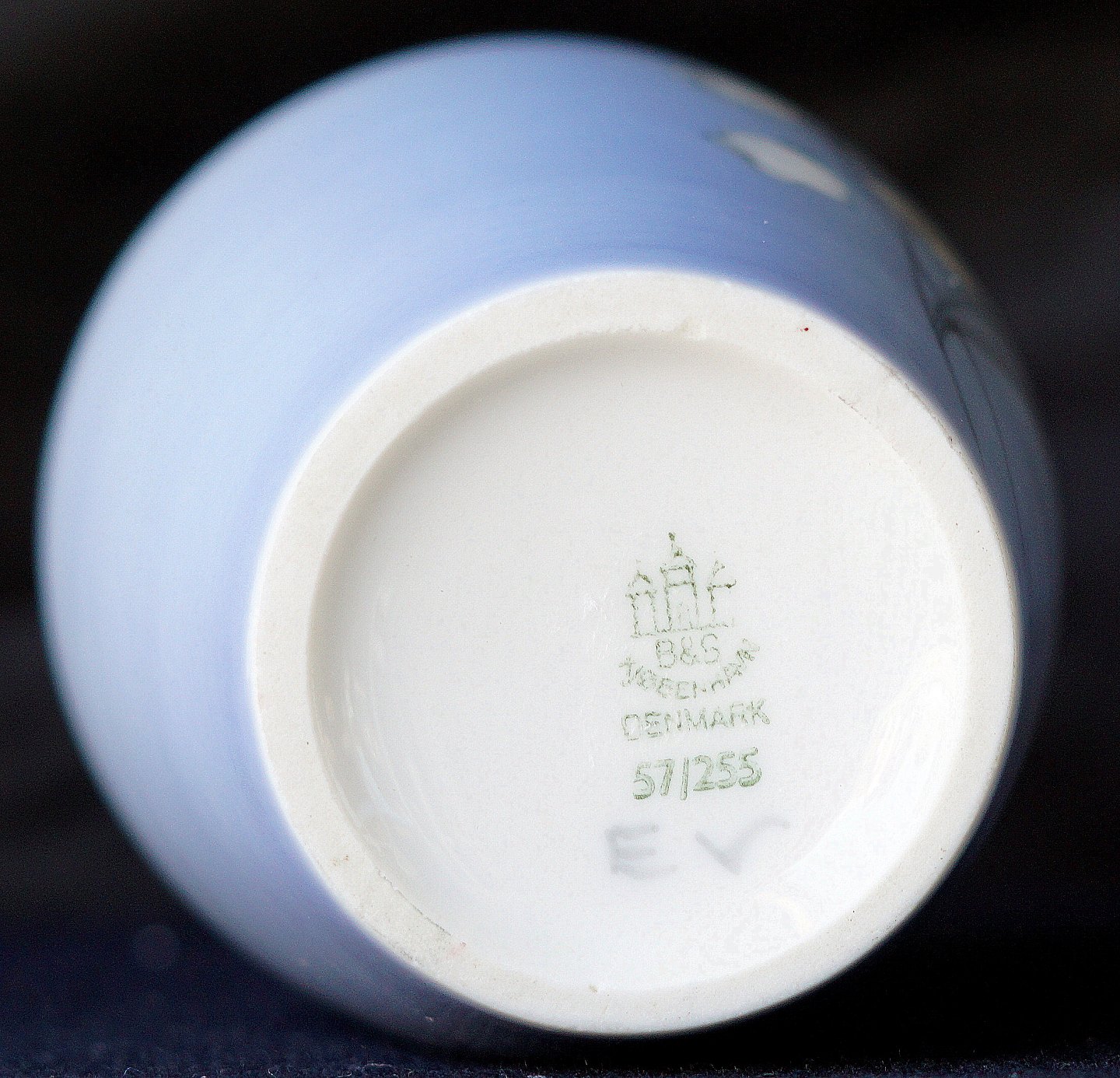 Bing & Grøndahl, vase 57-255, vasen er 1. sortering. Blå tone vase med motiv af liljekonval