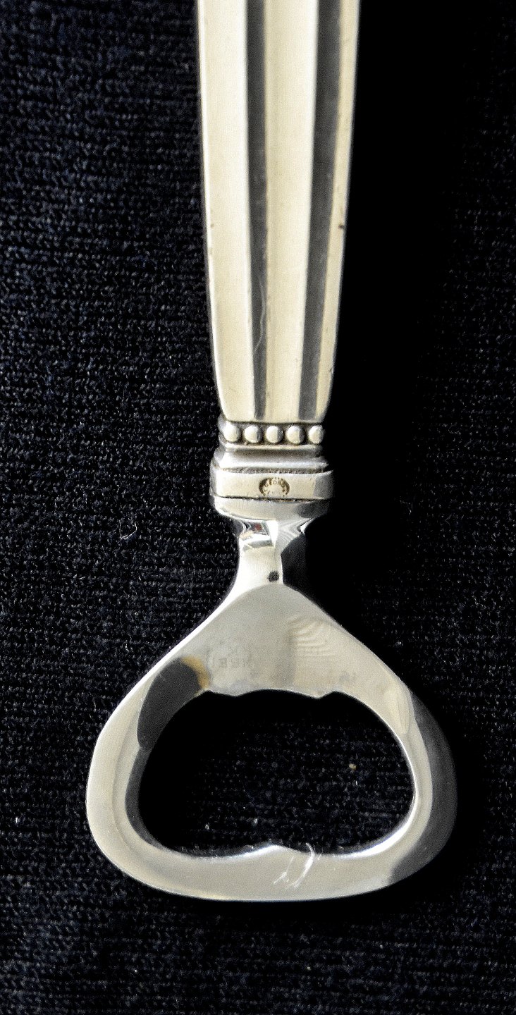 Georg Jensen Kongemønster oplukker, håndtag er i sterling sølv, selve åbneren er af Stainless stål