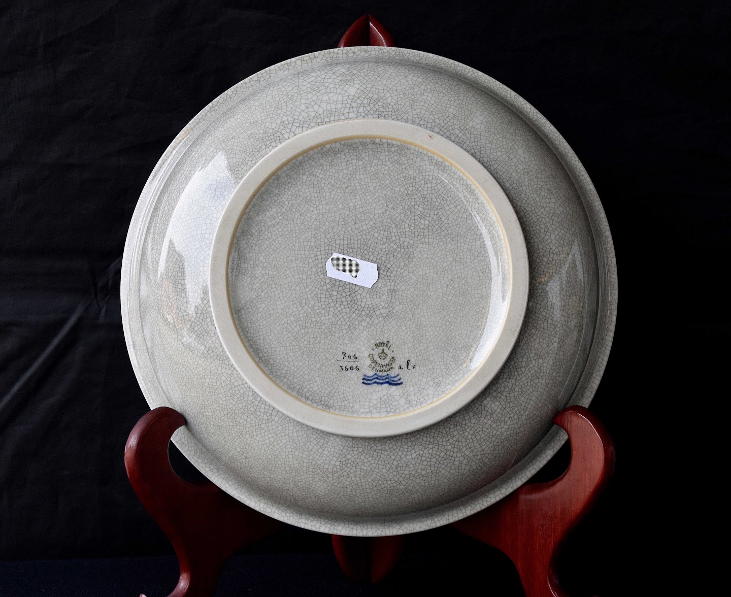 Royal Copenhagen, RC, Den Kongelige Porcelænsfabrik, KGL., krakelé, fad, guld kant, frugt, blomster, farver