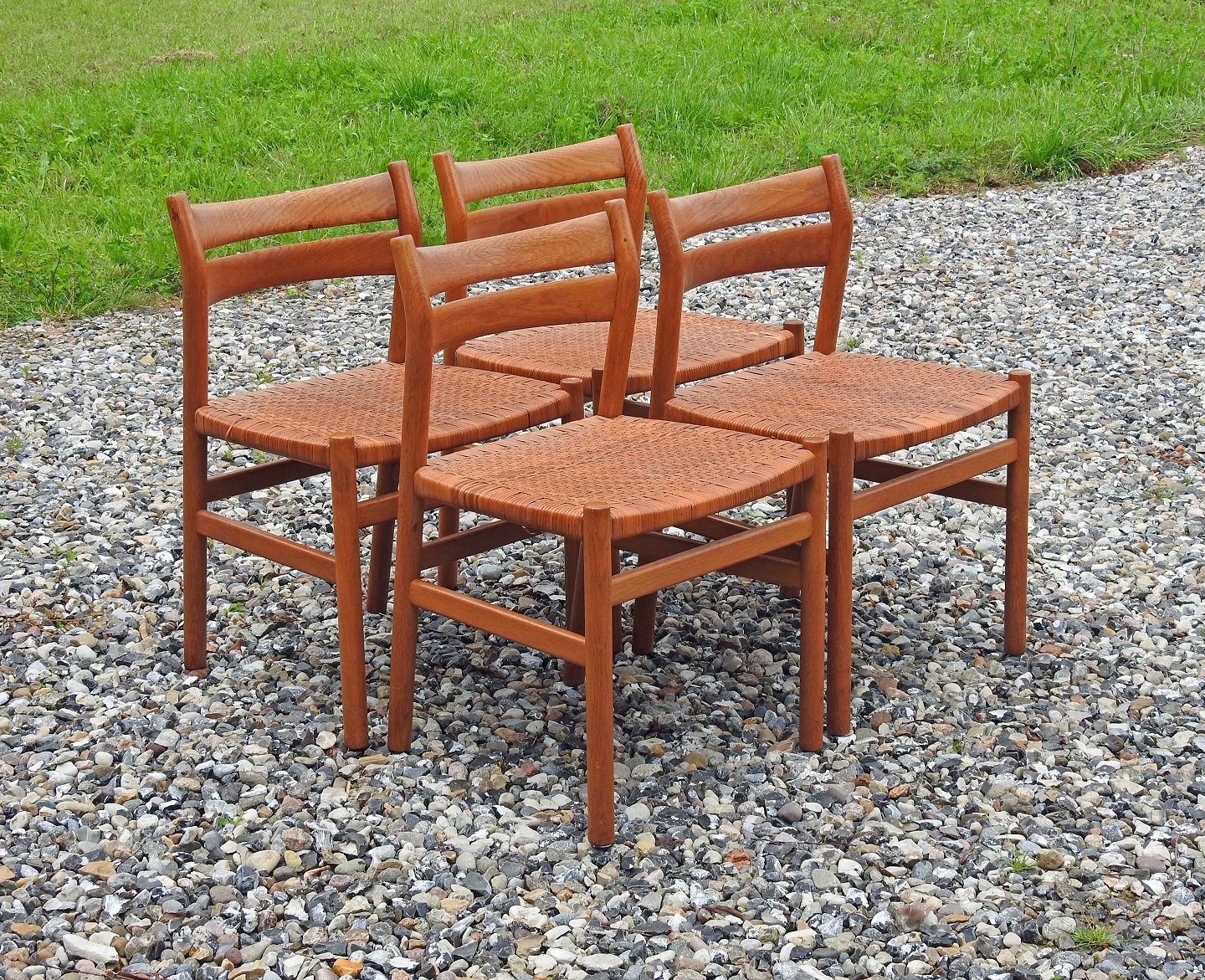 Fire stole model BM1 i egetræ med sæder af peddigrør flet