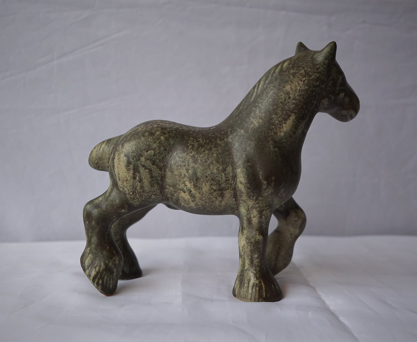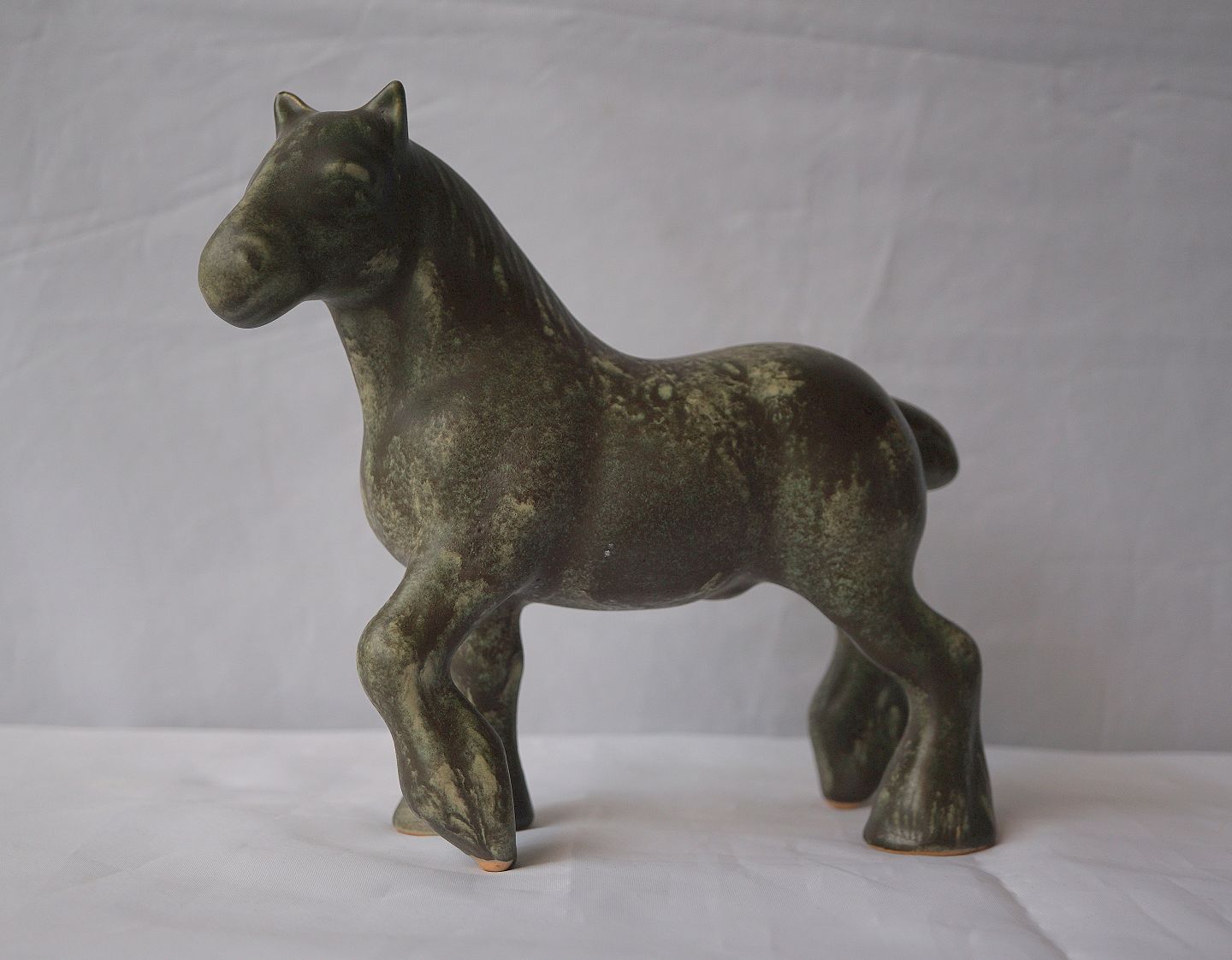Hest, grå/brun, keramik, Bornholm, Johgus