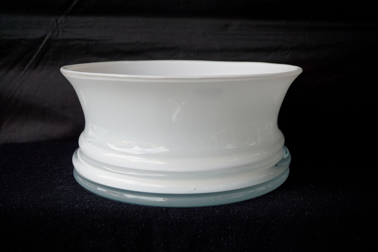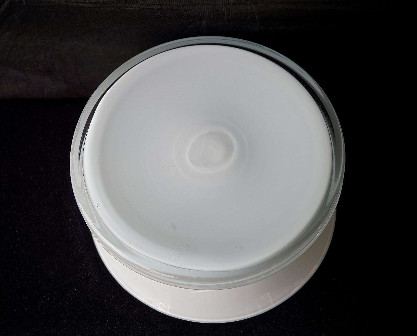 Amfora frugtskål i hvidt opal glas.