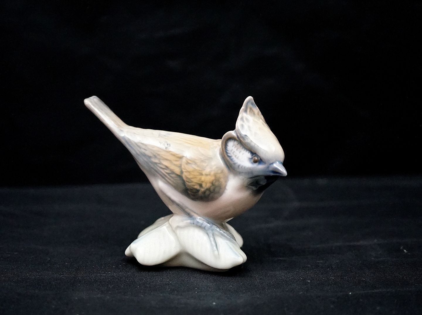 Lyngby figur nr. 77, af topmejse. Fuglen er produceret ved Porcelænsfabrikken Danmark.