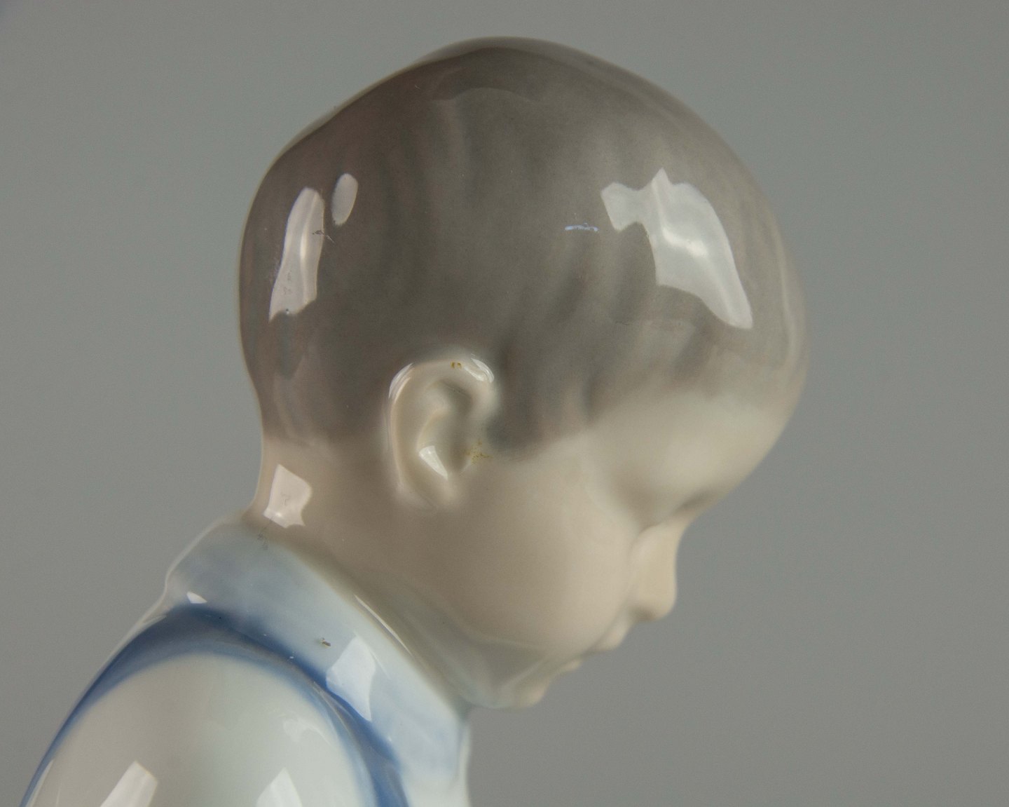 Figur i porcelæn med motiv af siddende dreng med spand nr. 2127