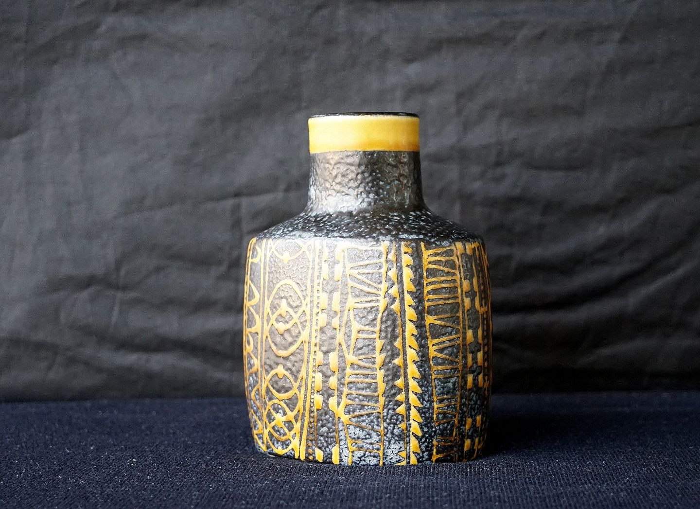 Aluminia. Tenera vase, nr 724/3207. Vasen er cholkoladebrun med gulligt mønster.