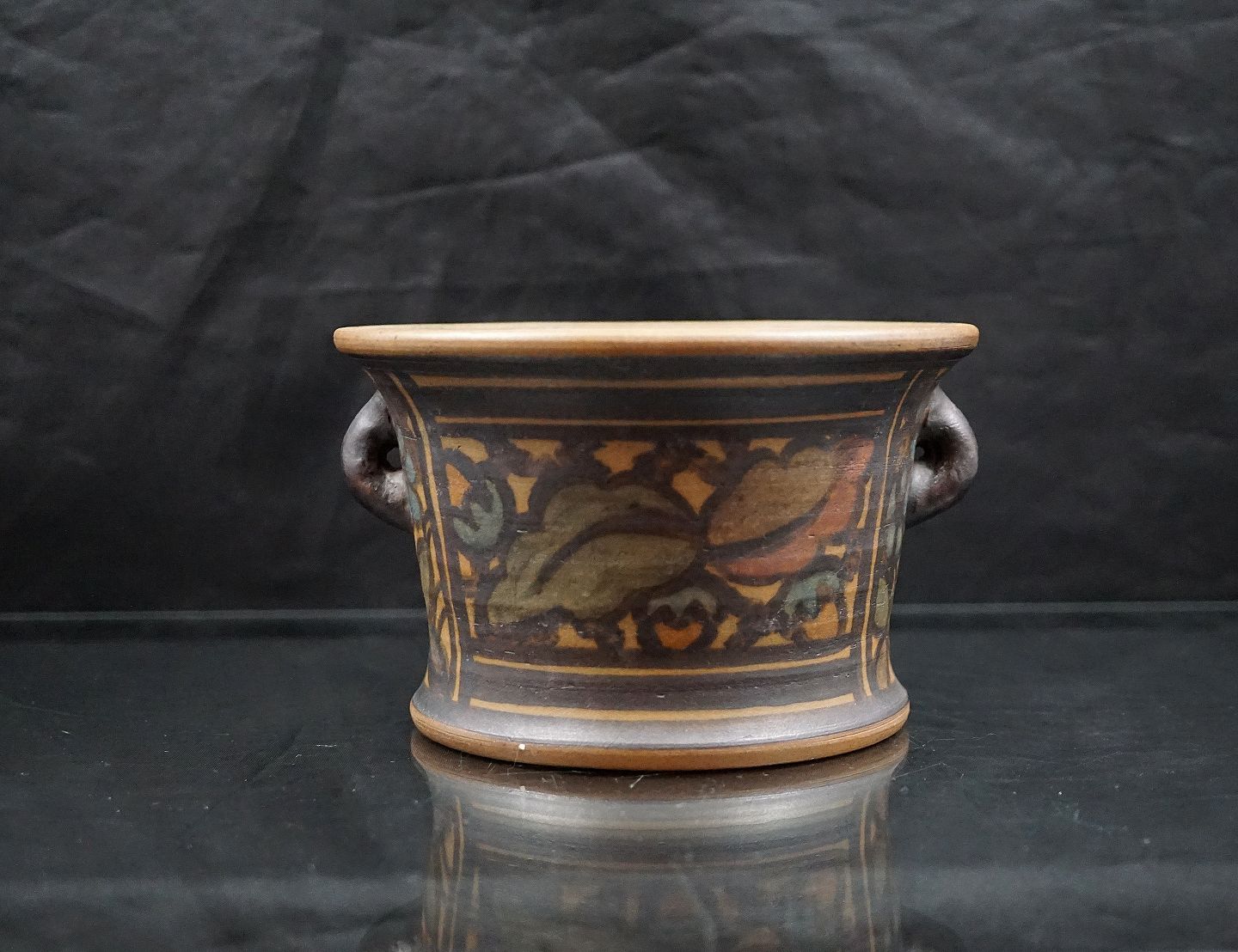 Hjorth, krukke med bladmønster. Krukken er af stentøj
