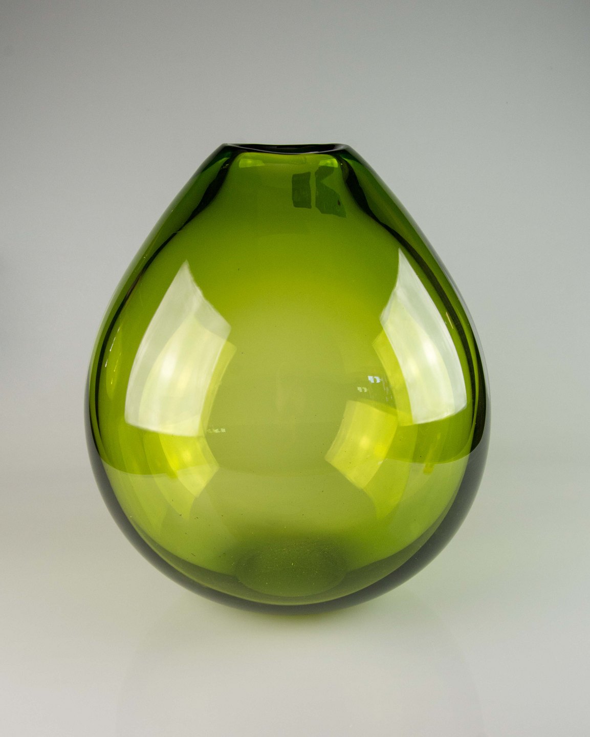 Dråben, grøn dråbe, dråbevase, Per Lütken vase, Holmegaard vase, glasvase, majgrøn dråbevase