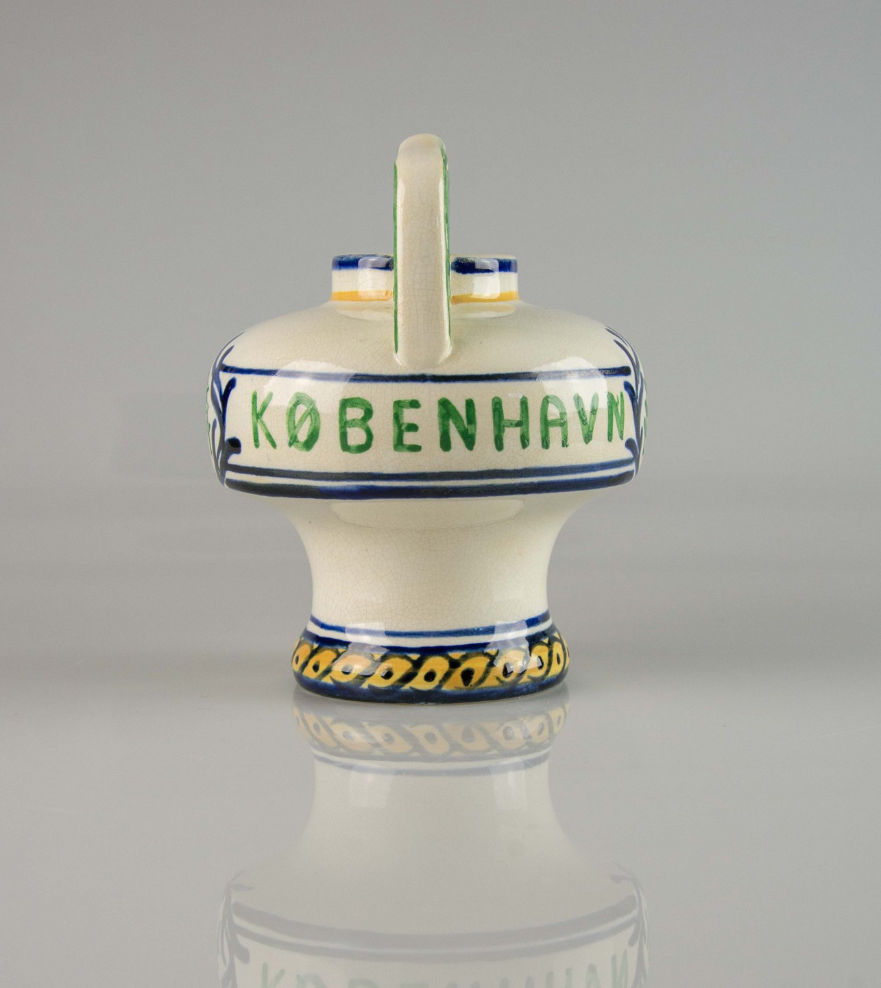 Vasen er fra år 1904 og dekoreret med Aluminia signatur samt teksten Aluminia København.