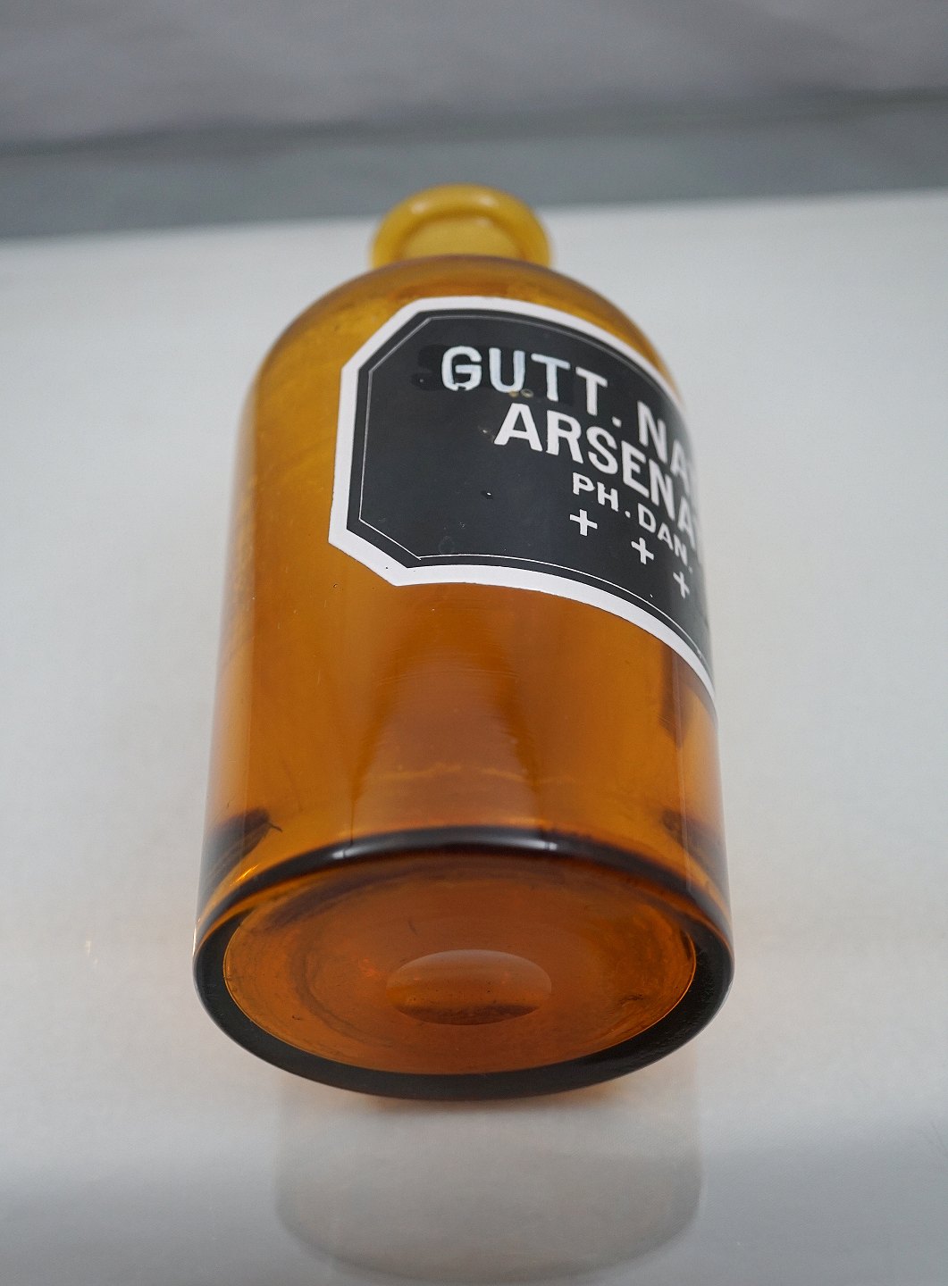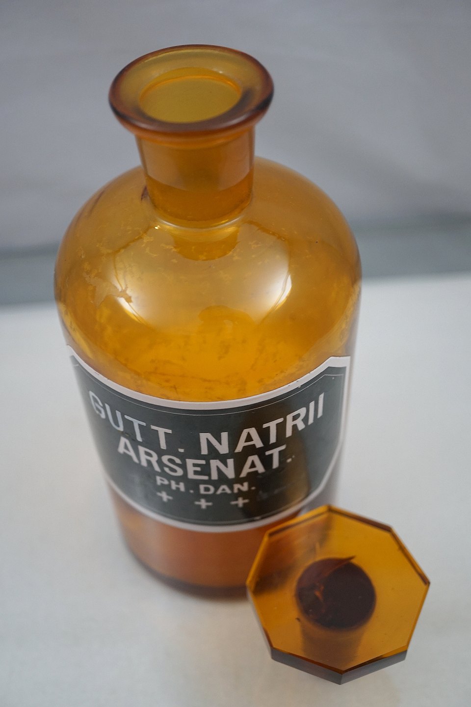 På flaskens etiket står Gutt. Natrii Asenat. Ph. Dan