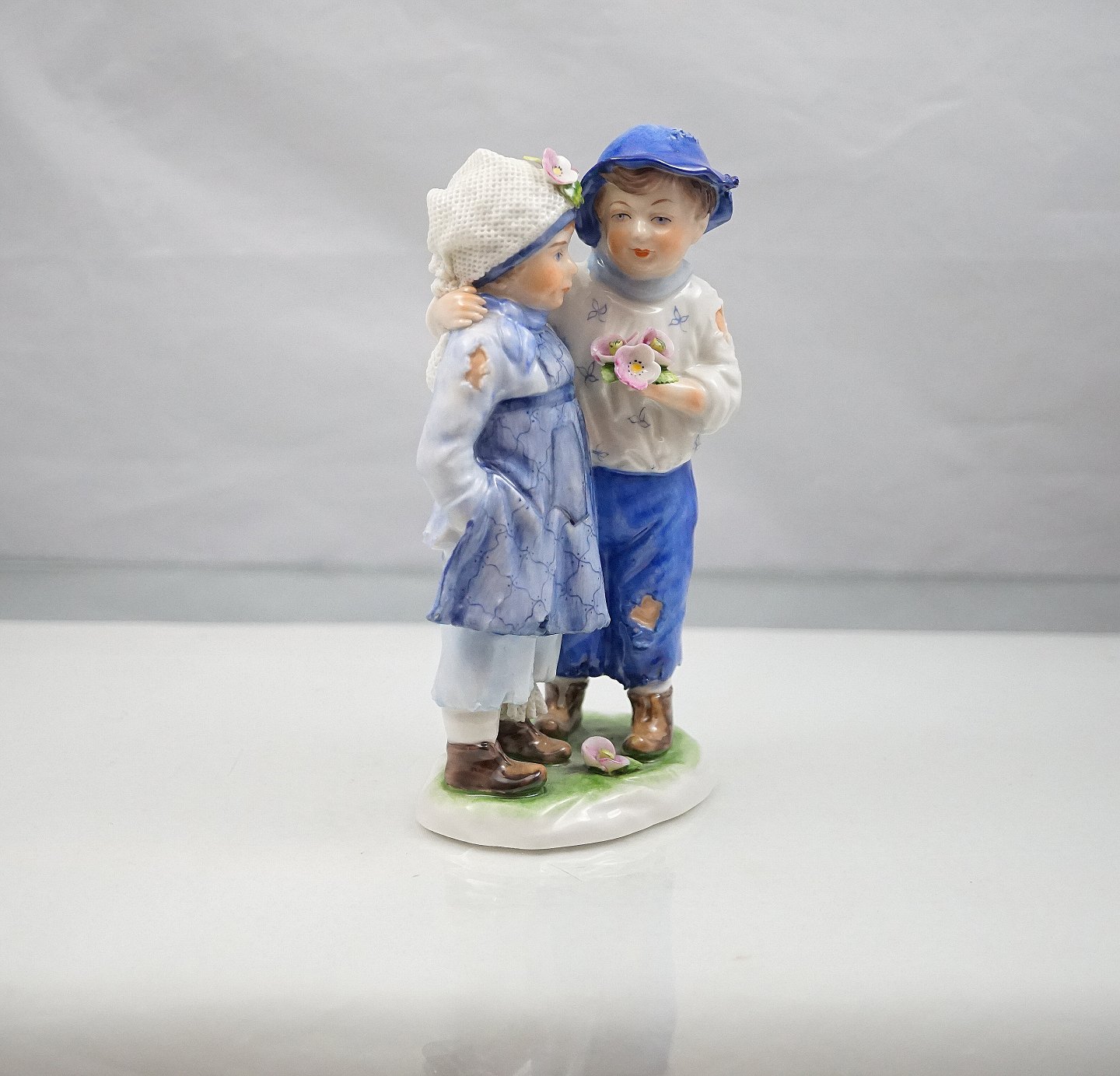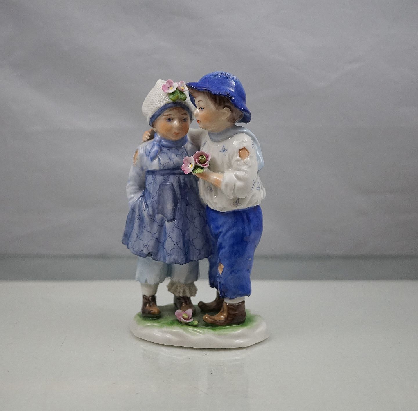 Porcelænsfigur af Dreng og Pige , dreng med roser, dreng og pige med huller i tøjet