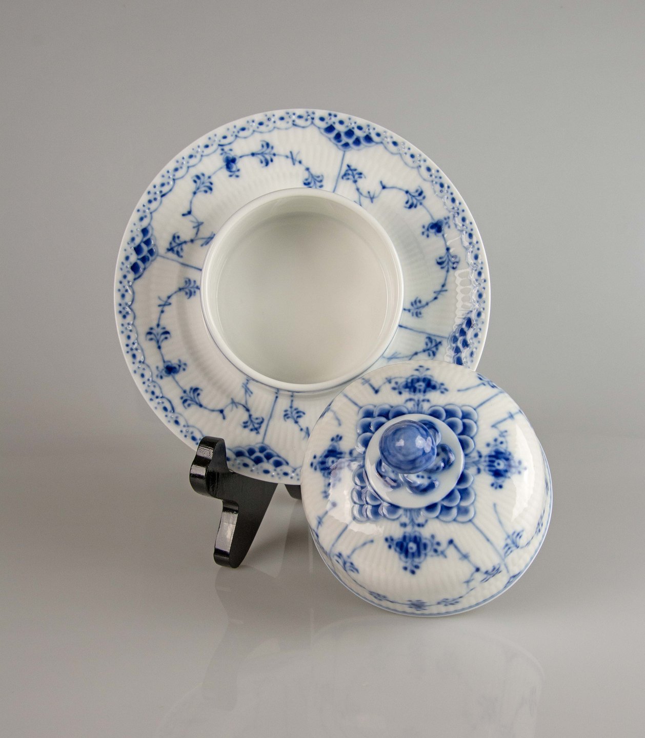 RC smørskål nr. 1/502, RC smørskål, RC musselmalet halvblonde skål, Kongeligt musselmalet, Kgl. musselmalet halvblonde skål med låg, Royal Copenhagen musselmalet halvblonde